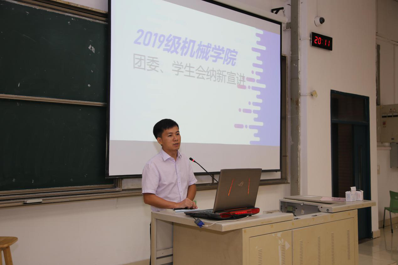 首先,院团委副书记林成金老师针对2019级新生开展新生合格团员教育和优秀团员推优入党工作宣传和布置。同时他也鼓励2019级新生积极加入到学院团委、学生会大家庭中来。