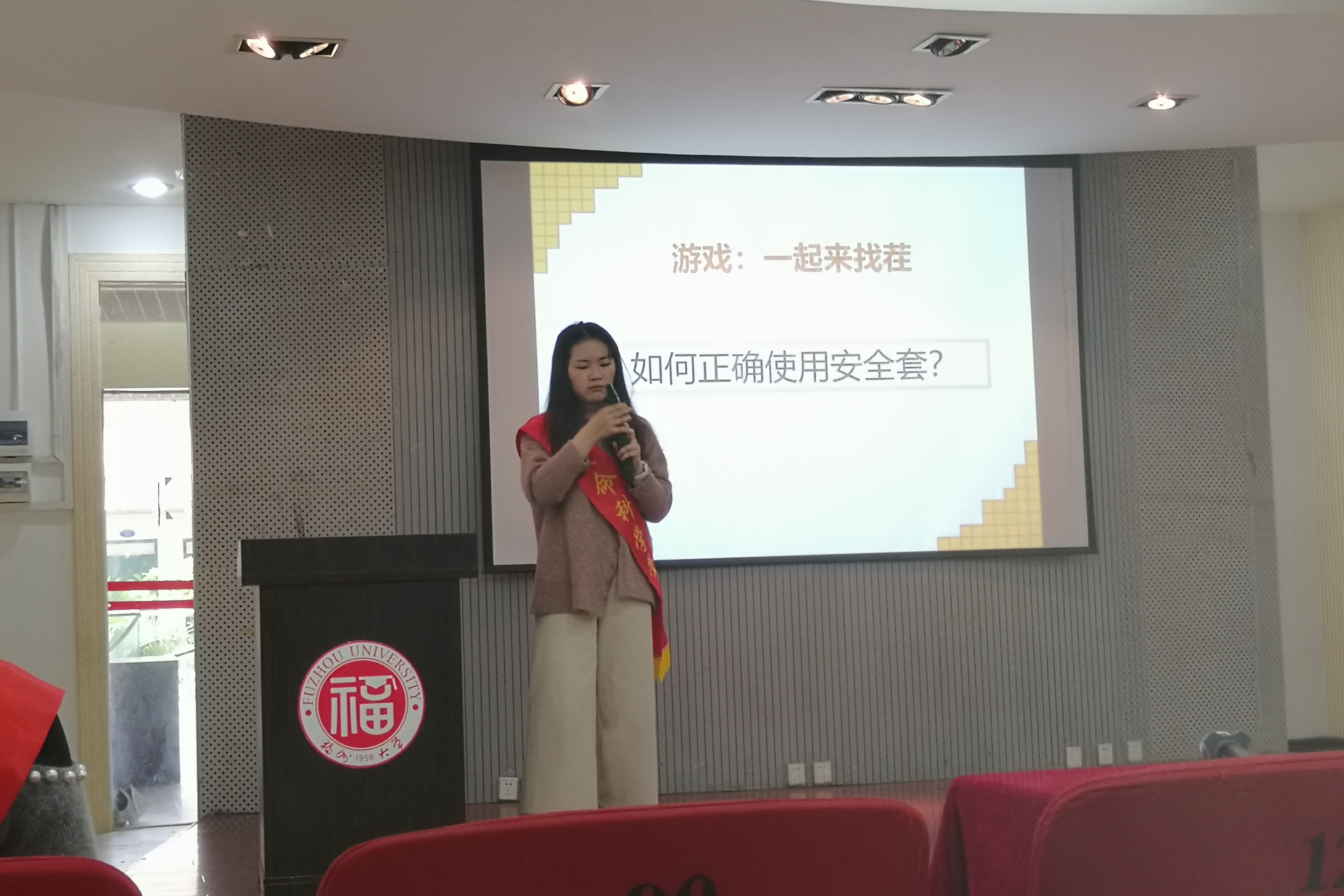 4月14日,海角视频 机械青年志愿者协会特邀福师大青芽性教育志愿服务团队来我校进行性教育宣讲活动。期间,演讲人详细地介绍了自慰及性安全的问题,还用相关道具进行情景演示,在场的听众受益匪浅。