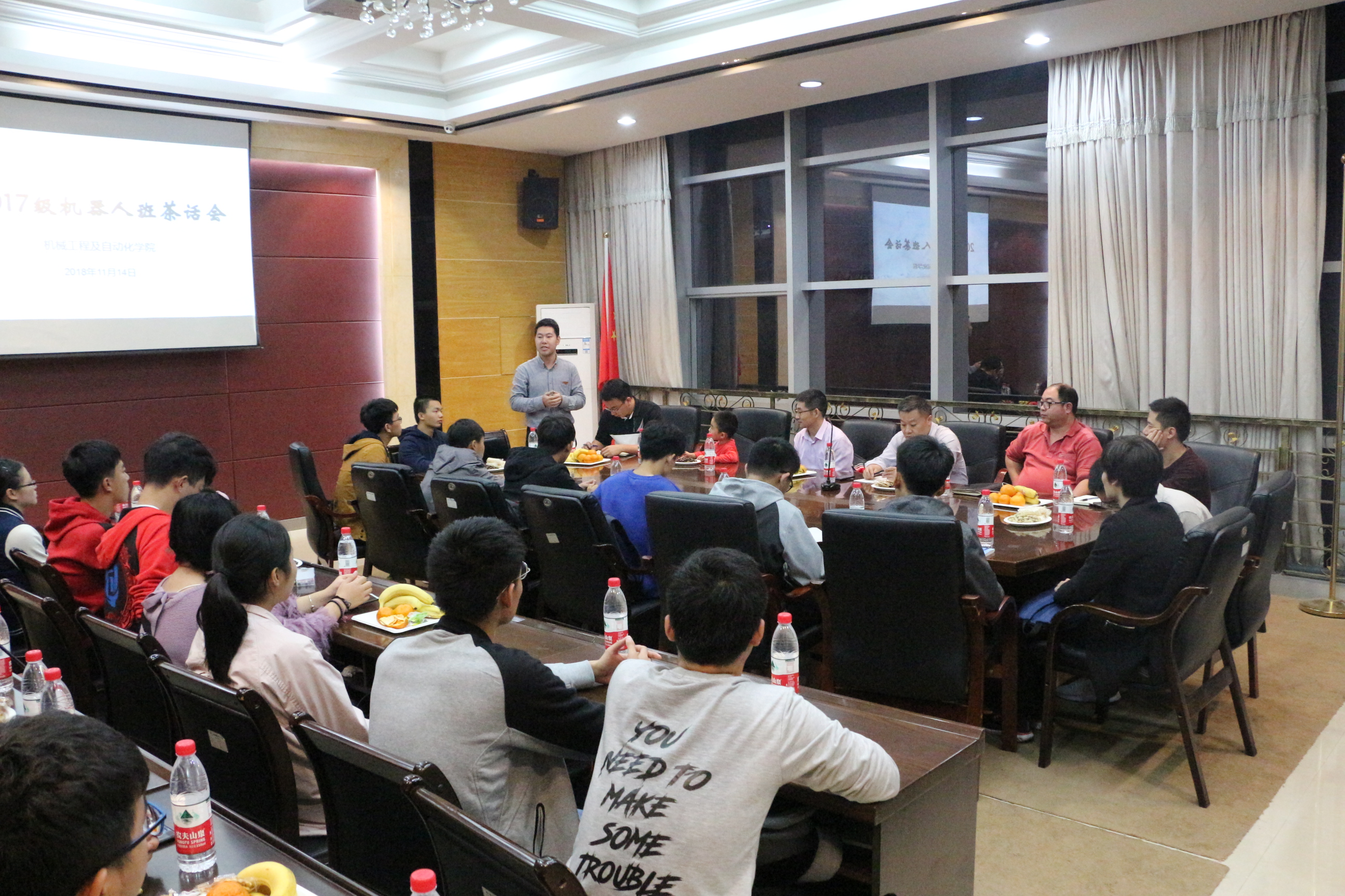 11月18日晚7点,海角视频 于机械南楼401举行2017级机器人班茶话会,出席本次会议的领导有学院党委副书记林文麟老师、副院长何炳蔚教授、机器人班指导老师张立伟老师、林立雄老师、机器人班班主任李彦杰老师、2017级辅导员陈伯豪老师。