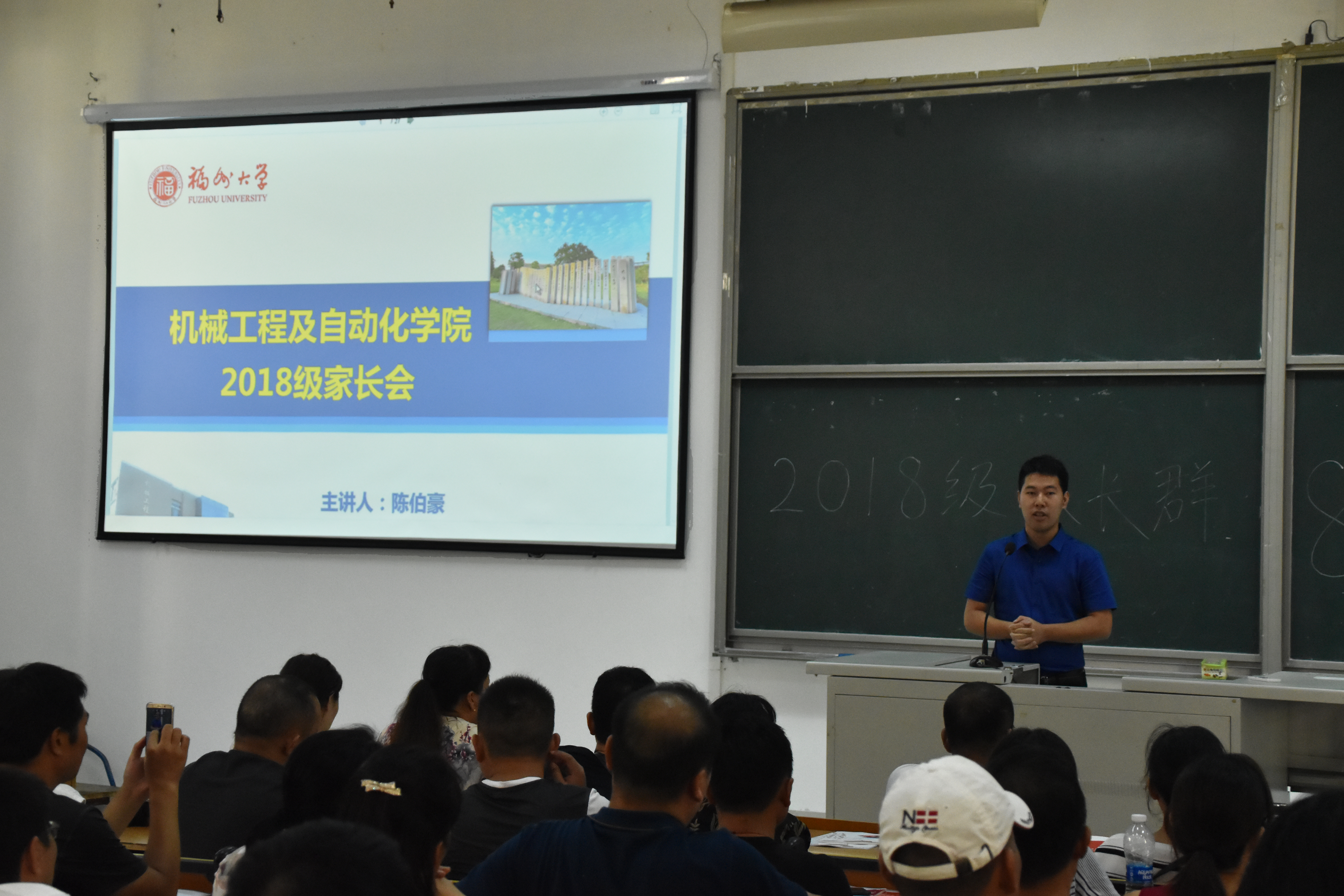 于文四102举办2018级新生家长会。出席本次会议的有学院党委副书记林文麟老师、党委正科级组织员刘旭莹老师、团委副书记林成金老师、2017级辅导员陈伯豪老师、2018级辅导员滕培秀老师及近400名新生家长。