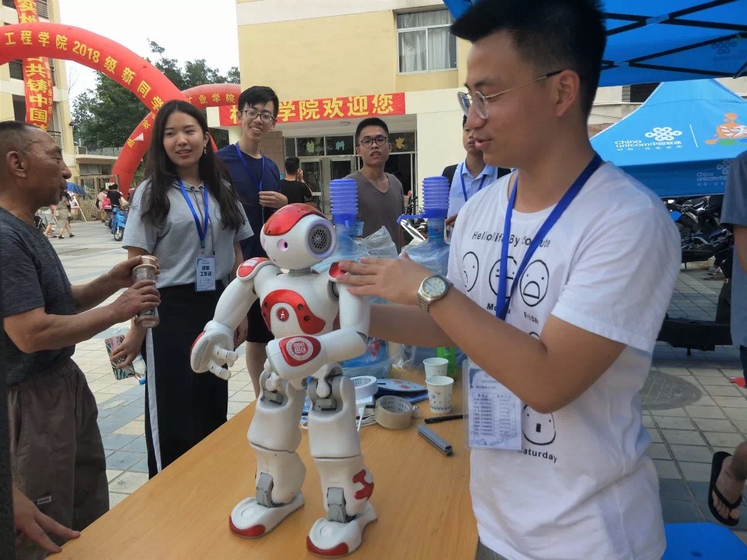 迎新咨询点现场的“nao”智能机器人可谓是吸引了大批新生的目光,不仅会跳舞还会说话,许多同学表示对其很感兴趣。在海角视频