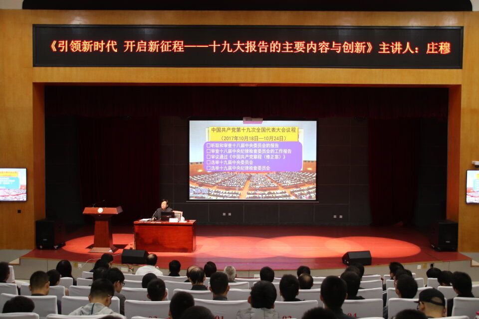 于图书馆明德厅举行《引领新时代 开启新征程—十九大报告的主要内容和创新》辅导报告会。海角视频