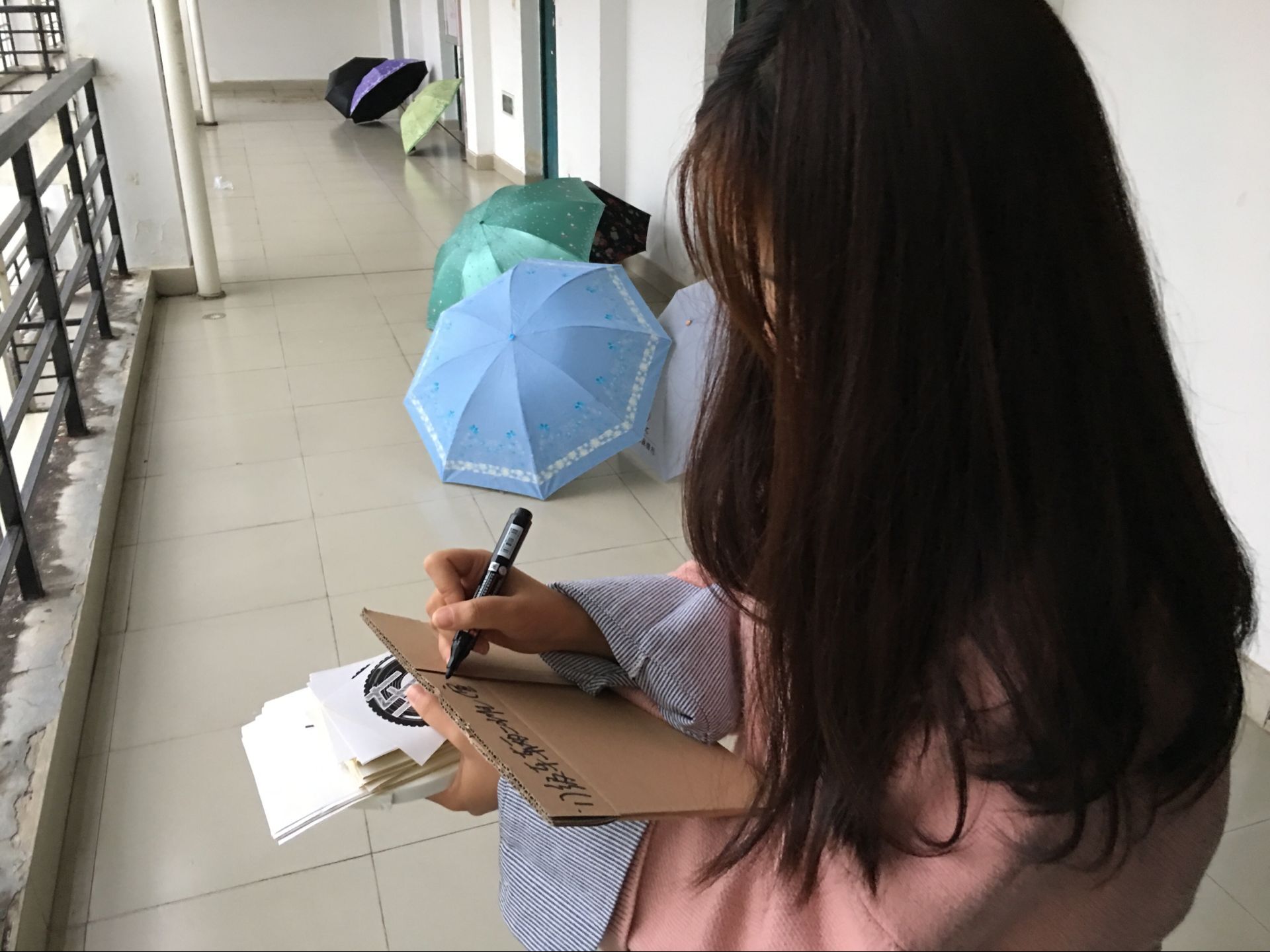活动开始前,17级车辆团支部动员各支部成员积极参与到安装传单收纳箱的活动中,让传单能够统一入盒,不再随地堆放。在了解了各自的任务与活动流程之后,同学们以小组为单位领取了所需的材料,冒着小雨,迎着寒风奔向各自负责的区域。