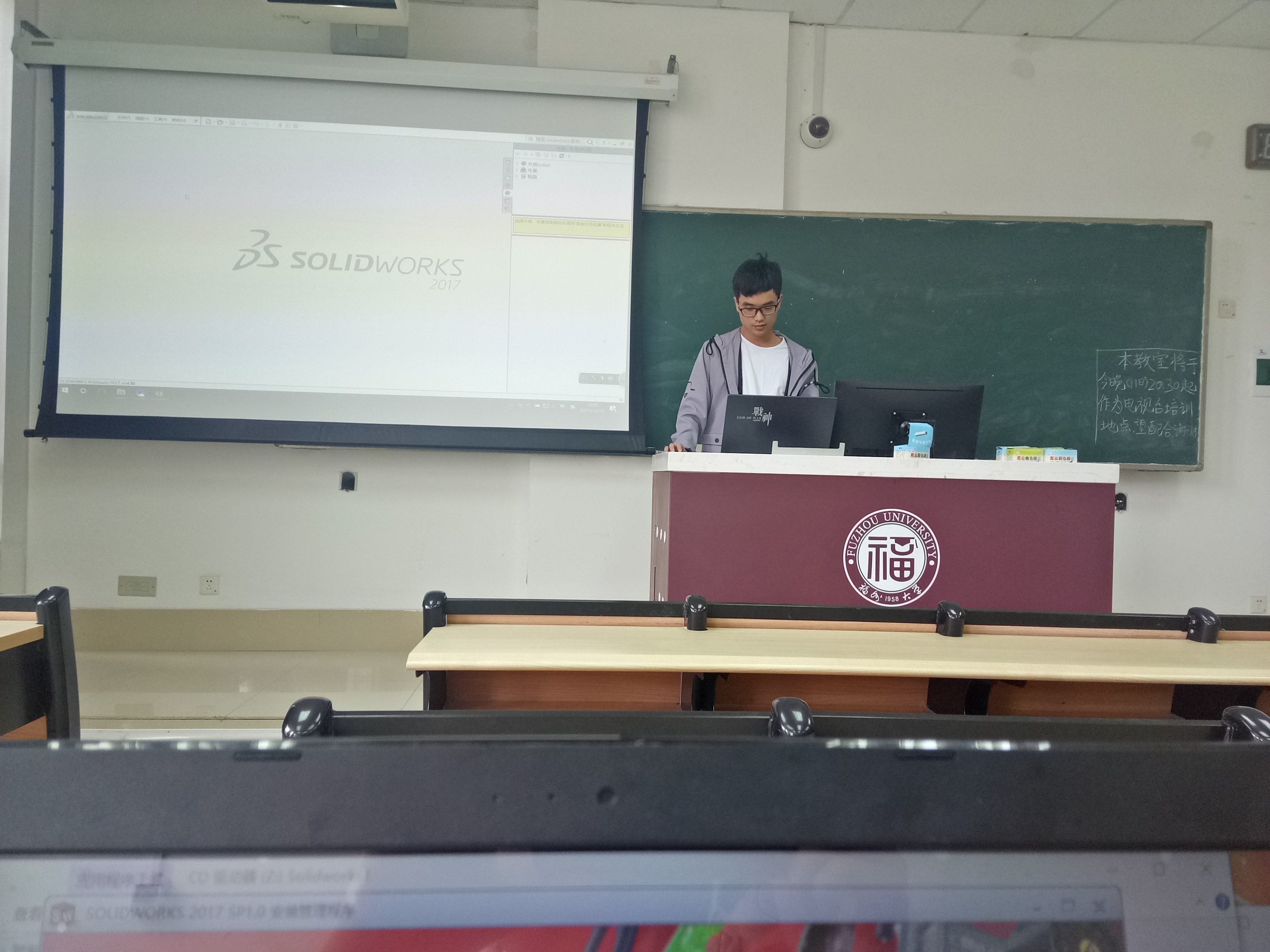 开始授课之前,夏老师给同学们分享了软件资源,并不耐其烦地进行手把手教学。在安装过程中,班长王安宁向同学们分享了其学习方法。在SolidWorks课堂第一讲上,夏老师讲解了基本草图的绘制、智能尺寸的使用、几何关系的使用、一些快捷键的使用及特征中拉伸、切除、圆角、放样,及其各自的参数一般使用方法。课堂最后,夏老师现场制作了一个杯子,来串联前面所讲的知识。课后,夏老师又细心地为那些不懂的同学进行讲解。教室里透露着浓浓的学习气氛。
