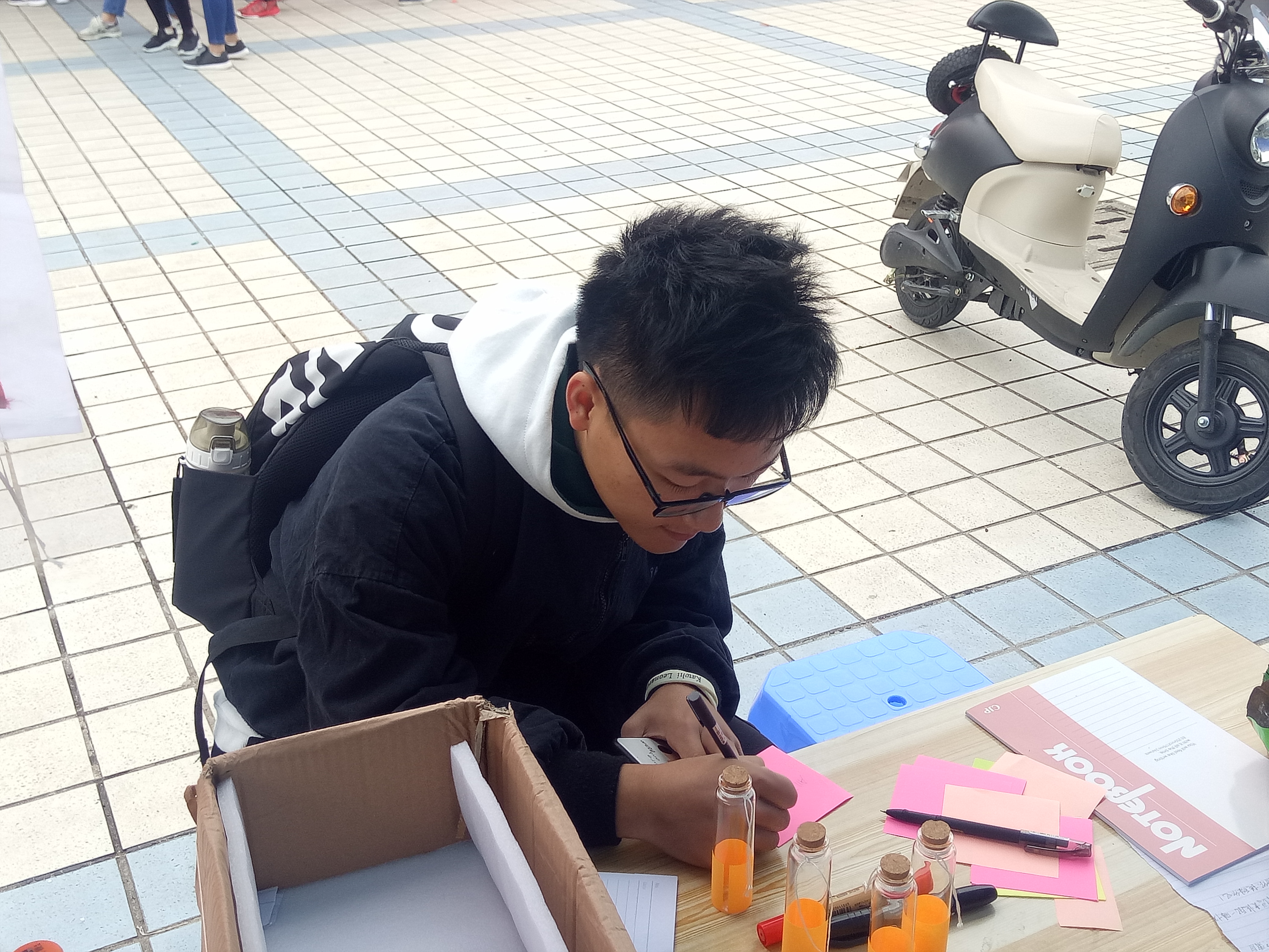 此次活动,许多同学积极参与。有的人为自己定下一个短期的小目标用来提醒自己;有的人则书写下未来的展望为自己确立前进的方向;还有的人给未来的自己写下一段话来检测自己是否不忘初衷。小小的纸张承载着同学们对自己未来的期望,纸张虽轻,分量重。对于承载着同学们梦想、期望、目标的梦想漂流瓶,由海角视频