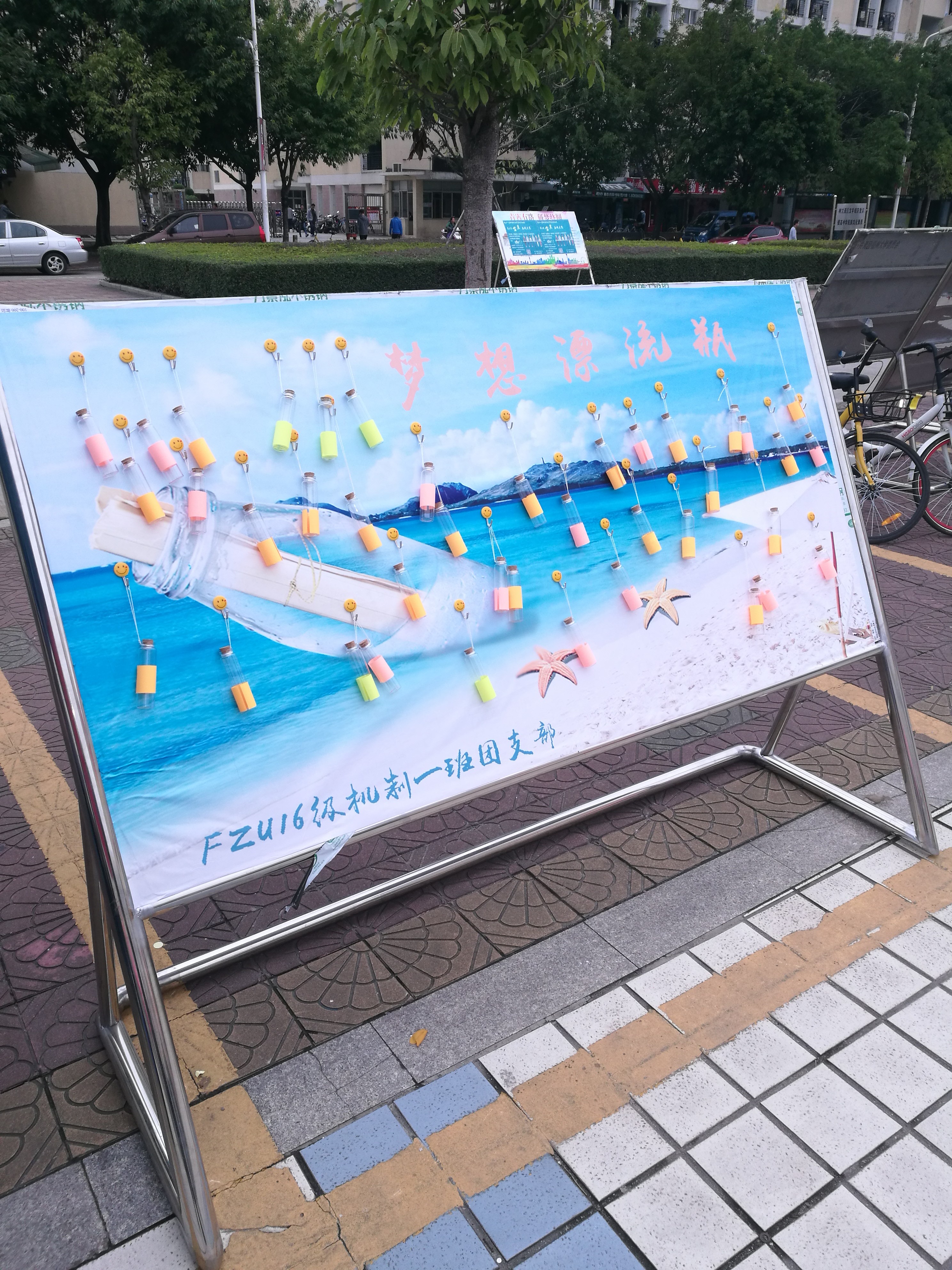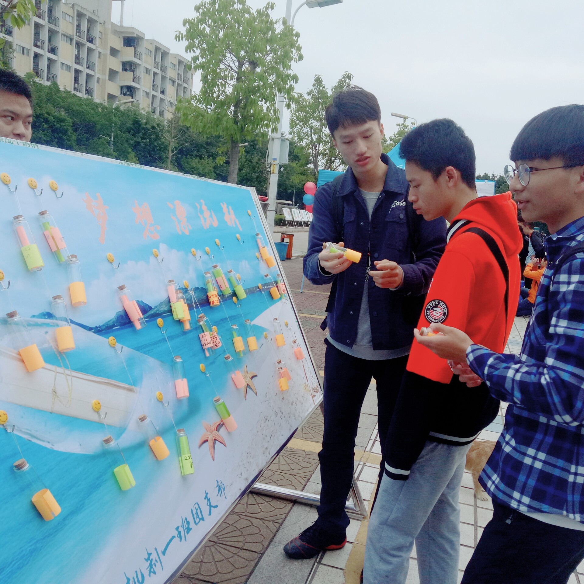 16级机制一班于青春广场开展“梦想漂流瓶”的团立项活动。