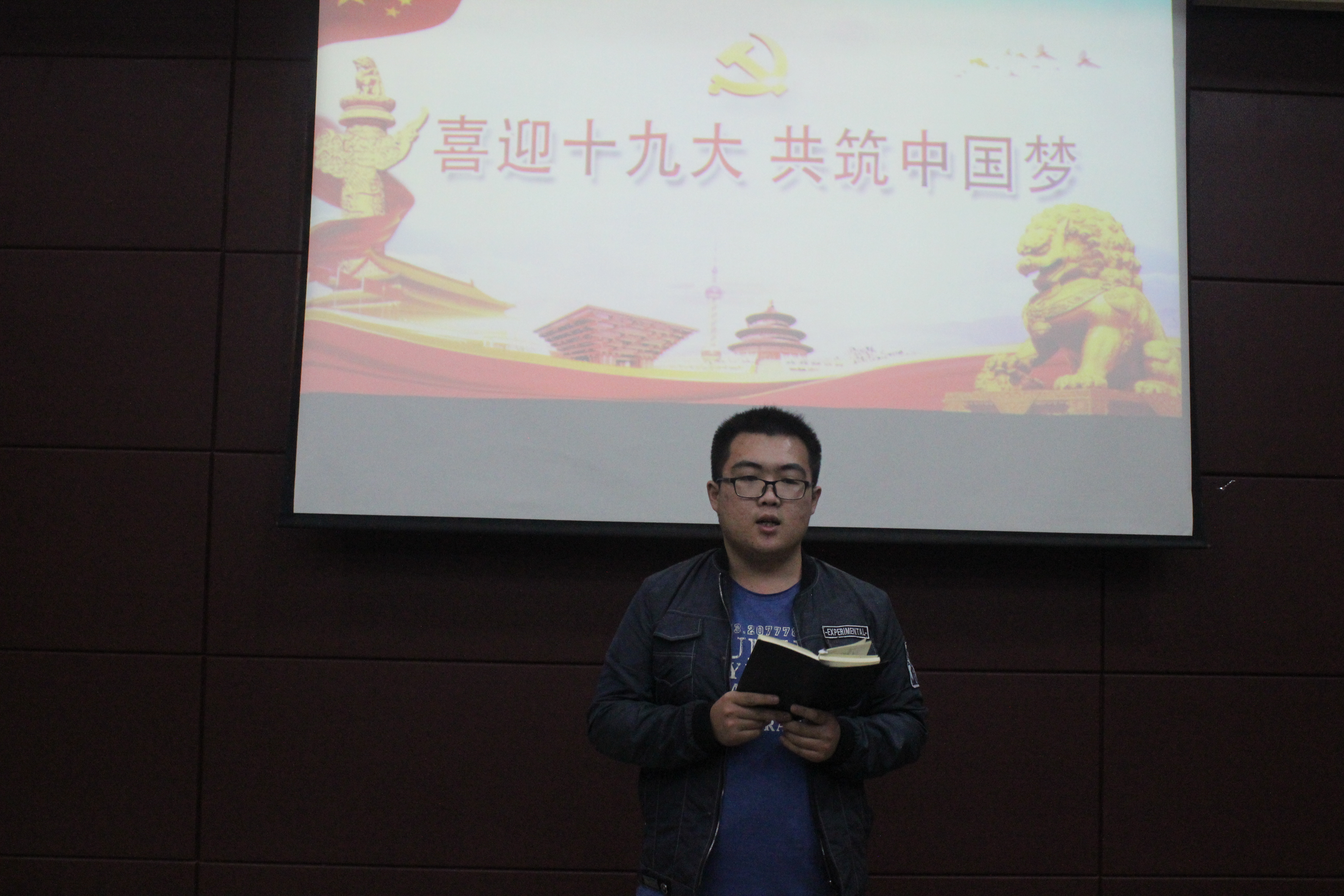 于机械南楼401会议室组织开展2015级预备党员及2016级入党积极分子“共话十九大,青春勇担当”交流会。会议由15级预备党员黄嘉树同学主持。