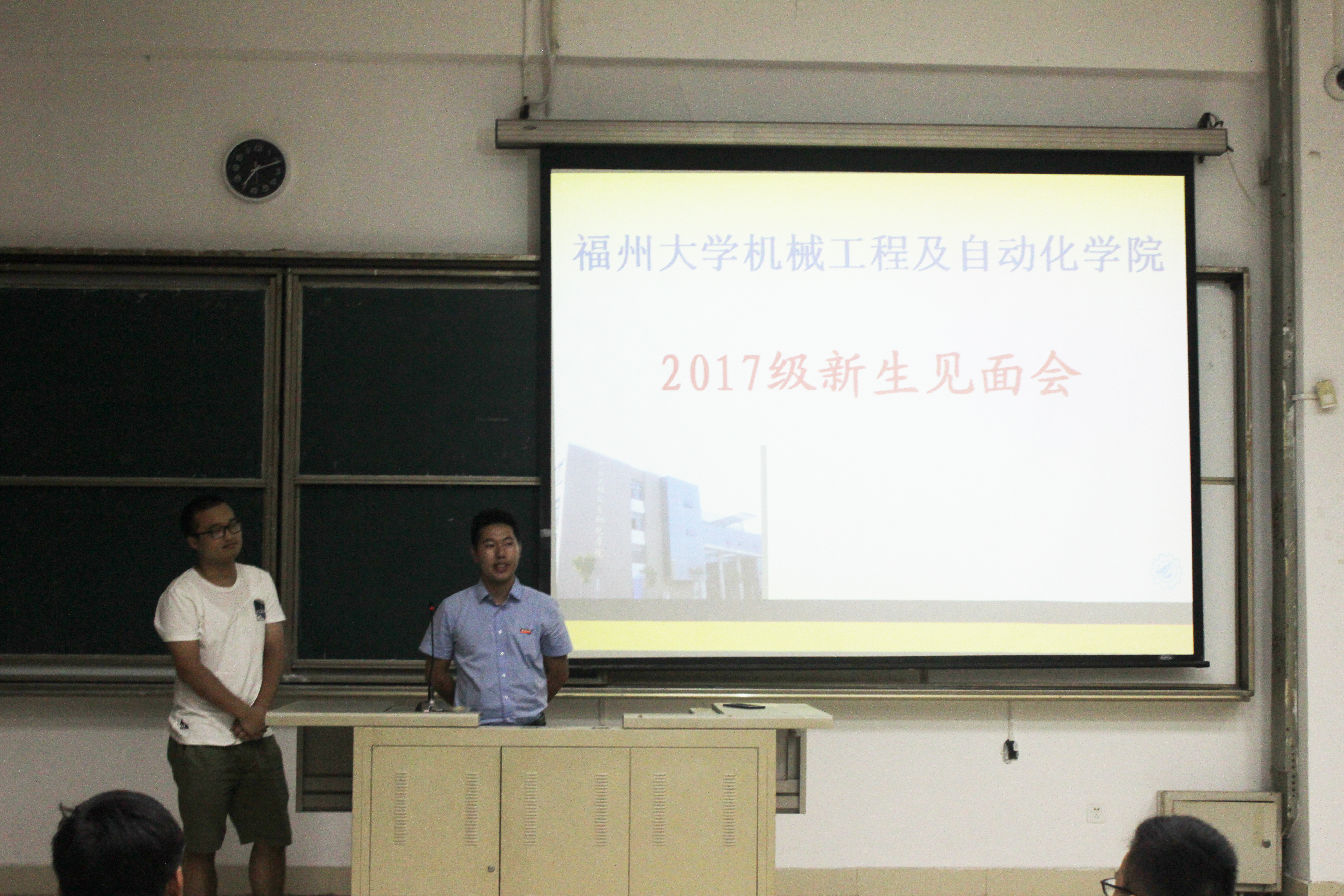 2017级新生段会于东二100成功召开。17级辅导员陈伯豪老师、17级辅导员刘远芳参加了本次会议。会议由1陈伯豪老师主持。17级辅导员及各班班导带领新生前往东二100,新生队伍整齐有序。