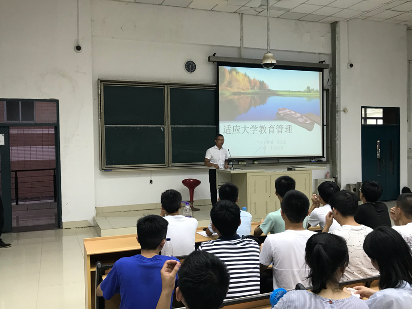 于东3-100开展《2017级新生教育之学生管理手册》讲坛。本次讲坛由学生工作处岳志强老师主讲,主题为《适应大学教育管理》。