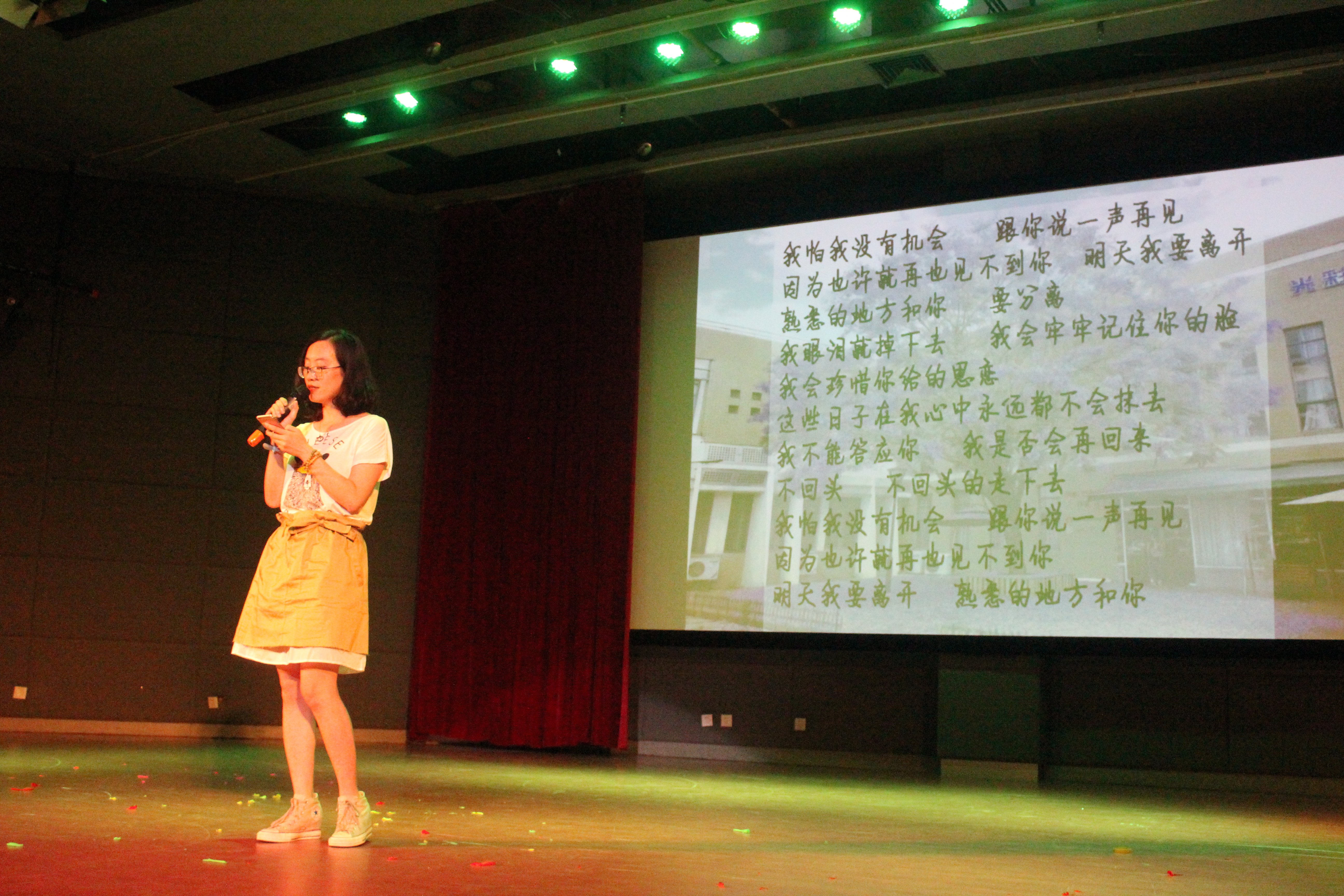 最后,刘旭莹老师与毕业学子同台演唱,欢动嘹亮的歌声响彻全场,晚会完美落幕。