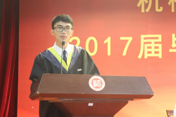 2017年获得博士硕士学士学位及优秀毕业生名单宣读稿》,出席本次典礼的领导为获奖学生代表颁发荣誉证书。高明、高清培作为学生代表为2017届全体毕业生献上了题为“感恩老师,感谢母校”的诗朗诵。教师代表张俊教授、优秀硕士毕业生代表司青同学、优秀学士毕业生代表顾李淼同学相继发言。张俊教授希望毕业学子能努力钻研,拥抱梦想;司青同学分享了难舍的校园记忆并对未来抱以憧憬;顾李淼同学表达了对老师谆谆教诲的感激之情。