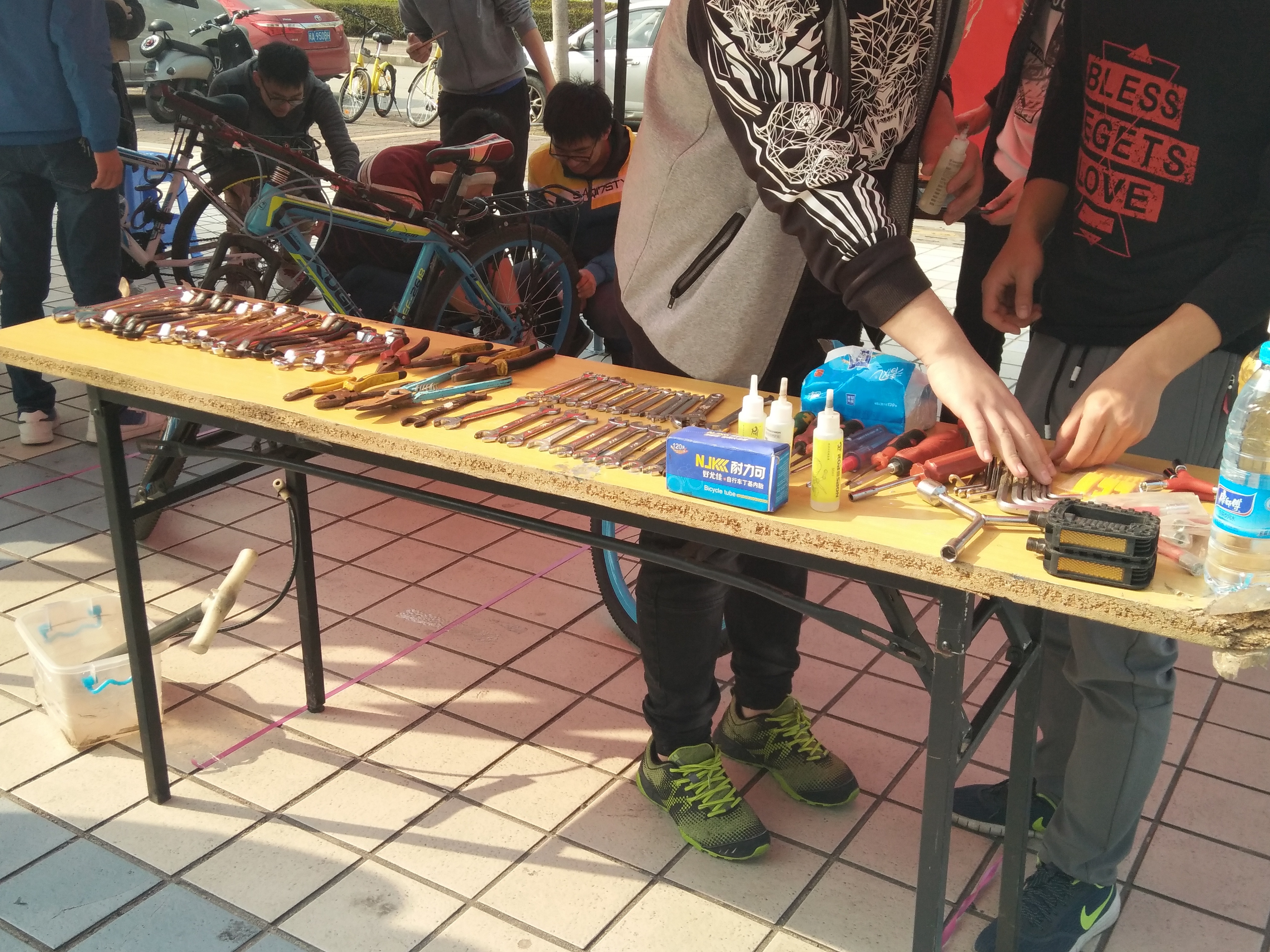 经过修车队员们精心布置,活动现场被划分为三个区域,分别为登记处、维修区和停放处。修车现场登记有序,修车工具摆放整齐,修车工作有序进行。在活动过程中,校团委副书记王三强老师、16级辅导员陈伯豪老师莅临现场视察,并提出了有效的指导和宝贵的意见。活动结束,共计维修车辆21辆。