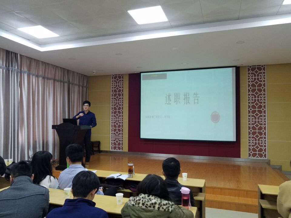 于机械北楼415会议室举行2016级班委述职大会。2016级辅导员陈伯豪老师和陈谊老师、2015级辅导员金瑞老师以及学院团委学生会主席团成员和各班班长团支书出席了本次述职大会。参加活动主要为学院16级各班班长和团支书。