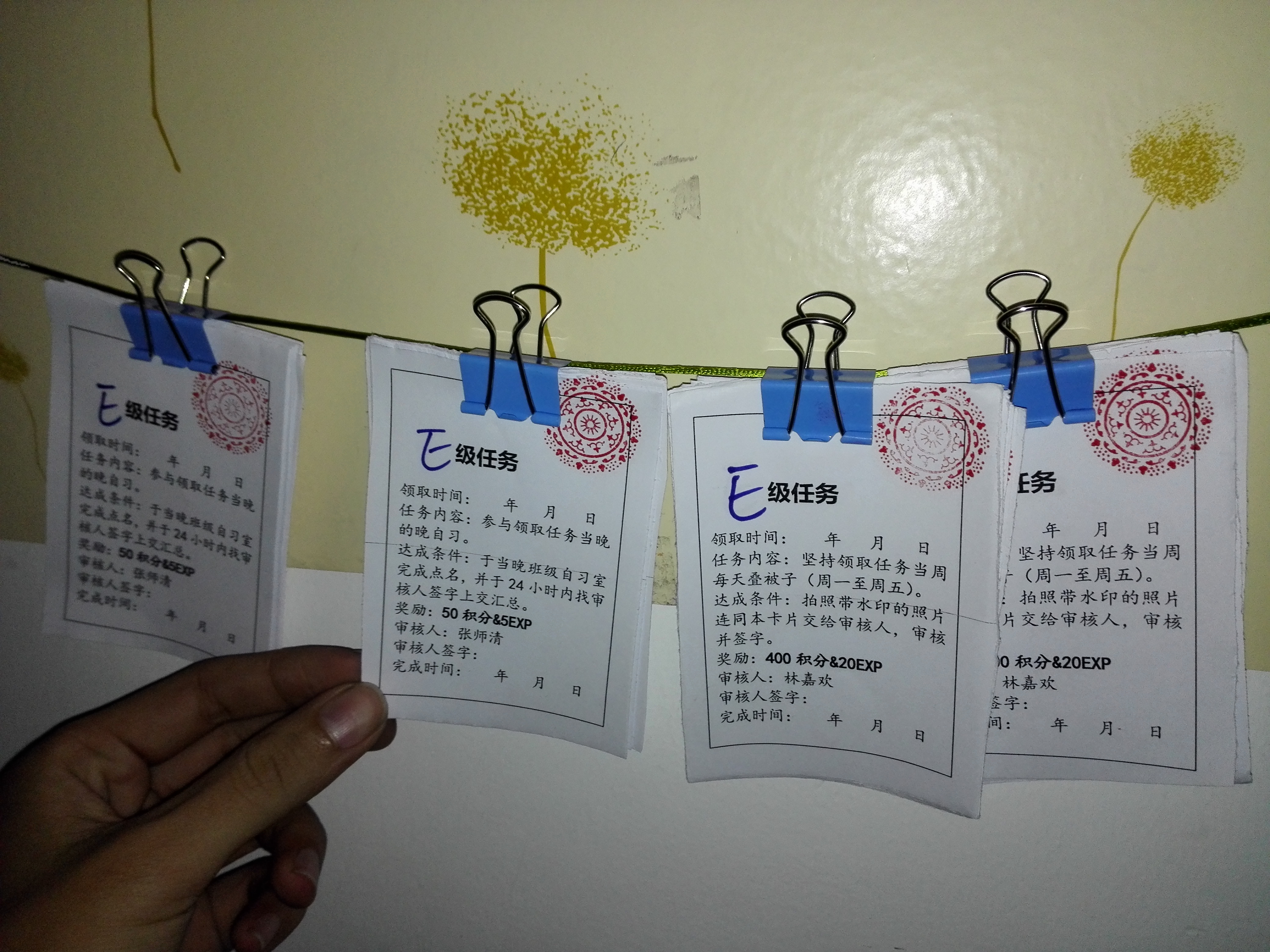 近日,该班级为促进同学们学习生活的热情,将虚拟游戏中的排位等级与悬赏机制和现实活动紧密结合,通过开展大型现实非虚幻新题材史诗级成长类“RPG游戏”,模拟悬赏机制,摆脱了电脑系统对人性游戏行为的束缚,通过不定期地发布任务,并对任务与参与个体评定等级,以期同学们的广泛参与。
