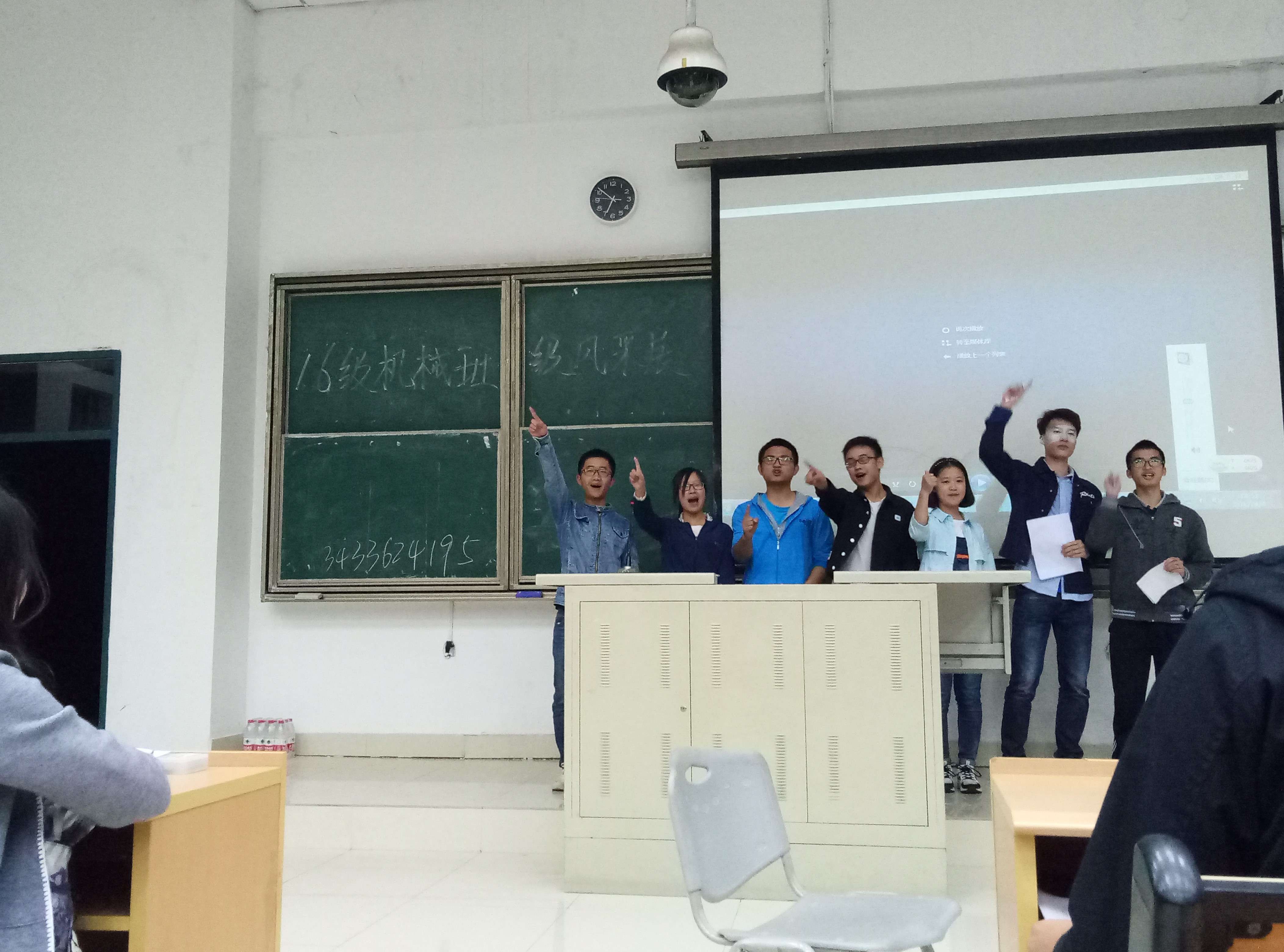 2016级在东三-100教室举行了“班级风采展”。此次比赛邀请到的嘉宾有机械学院2016级辅导员陈伯豪、陈谊以及各班班导,比赛通过视频、PPT等形式展示班级建设情况,彰显班级特色文化和活动。根据以前期的基础材料评分和现场展示评定最终结果。