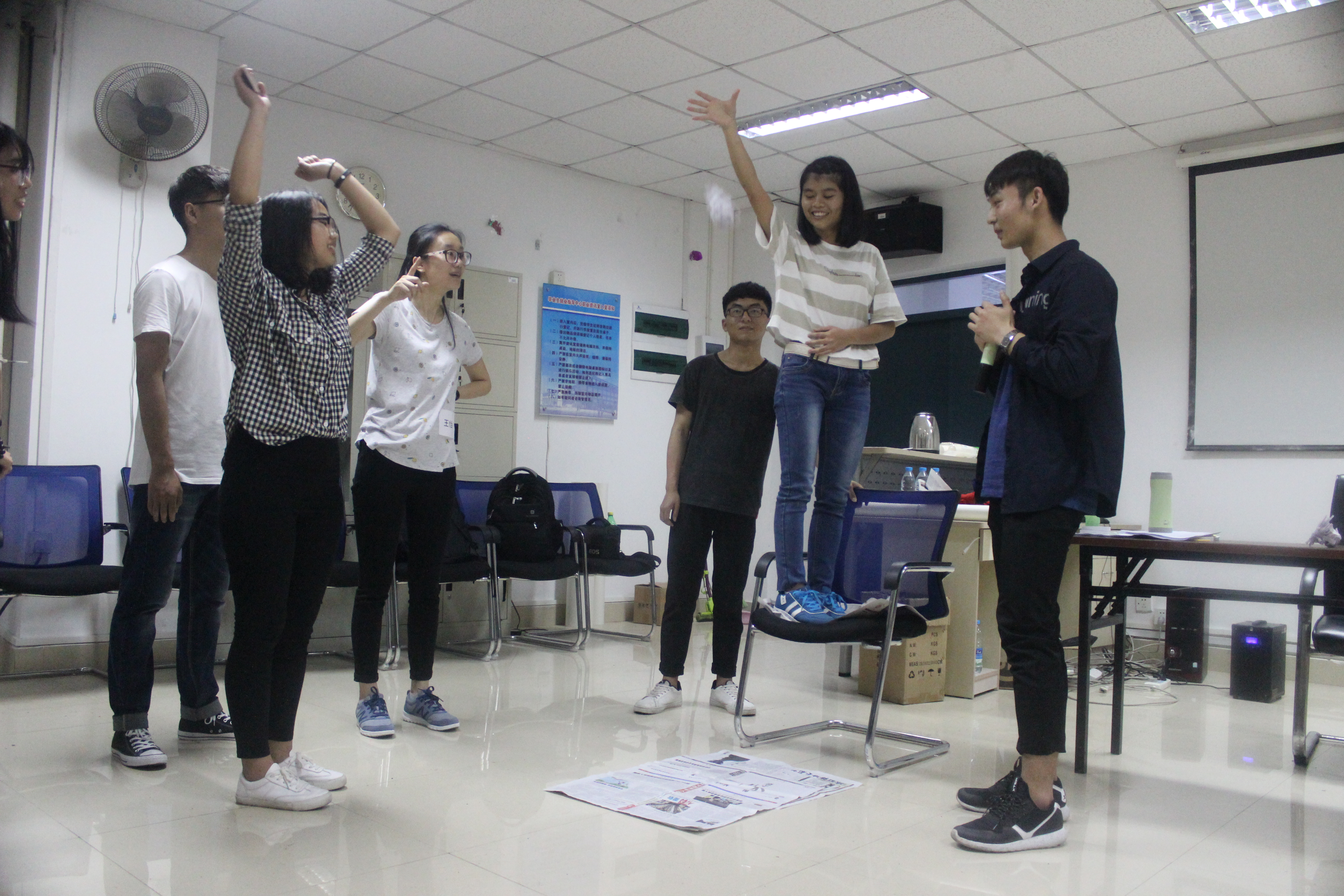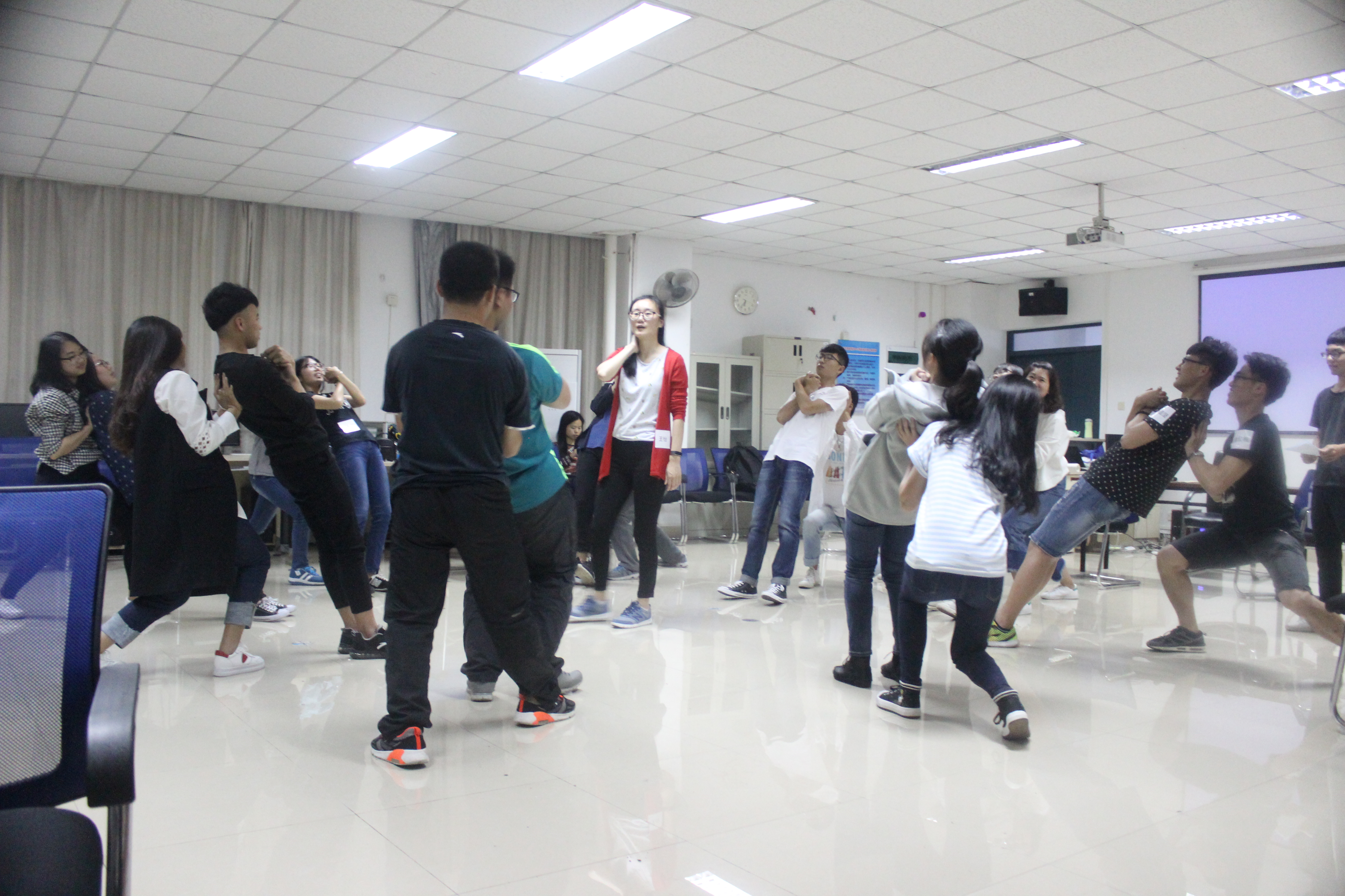 本次课程通过“信任岛”、“防弹背心”等游戏让同学们明白了团队协作的重要性。同学们都积极地参与到游戏中去,在游戏中感悟道理,现场气氛十分活跃。