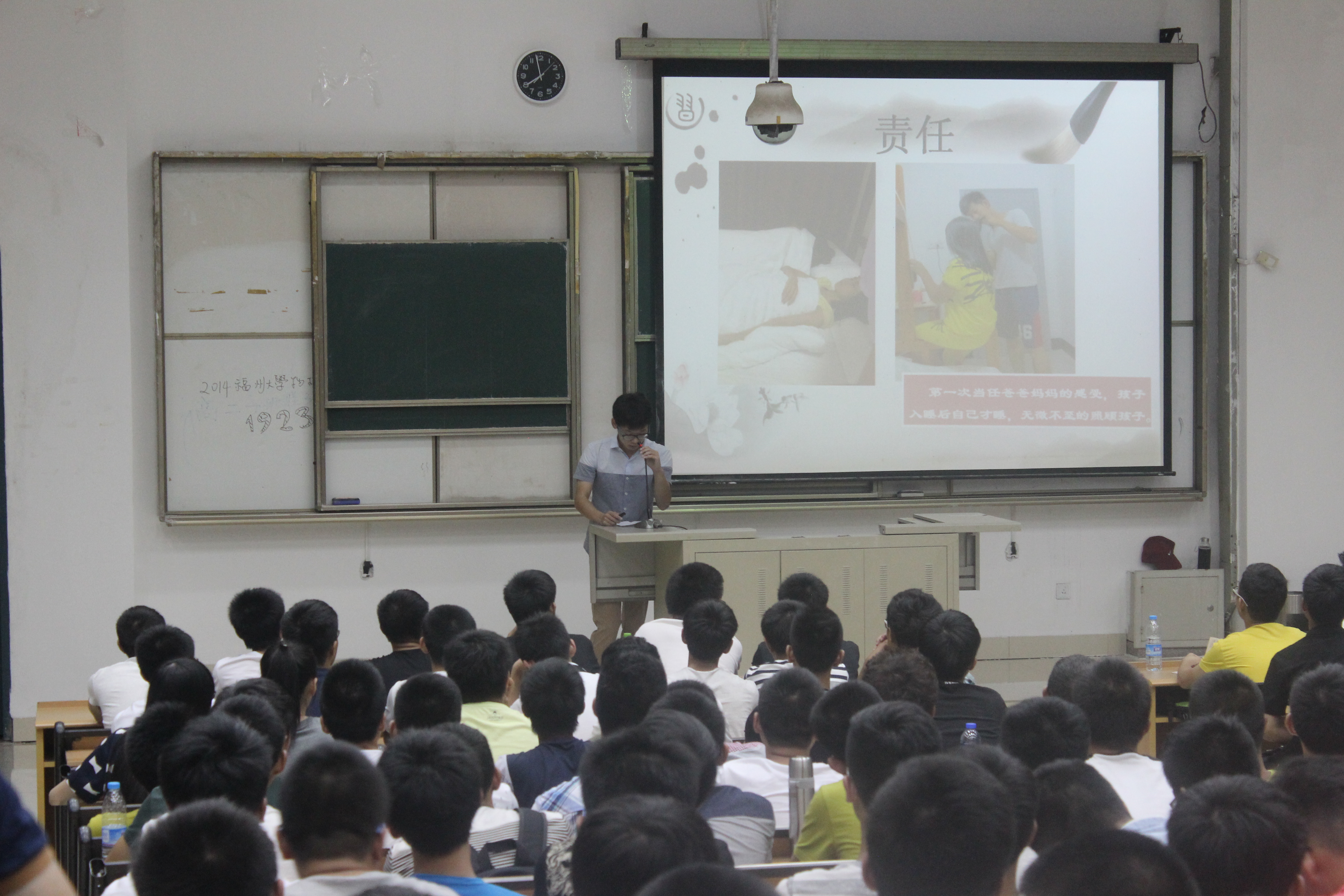 首先,研习社成员们用精彩的PPT展示,分享了自己在社会实践中的经历。通过一个又一个小故事,让在座的新生们明白“什么是责任?”、“什么是承担责任?”。随后,研习社的部分成员与新生们互动,有些新生甚至写了小纸条给研习社成员——“你们的组织真的好棒,我要怎样才能加入你们一起学习呢?”等等。最后,刘旭莹老师为今晚的分享会做了总结,引导新生去感悟,去成长。