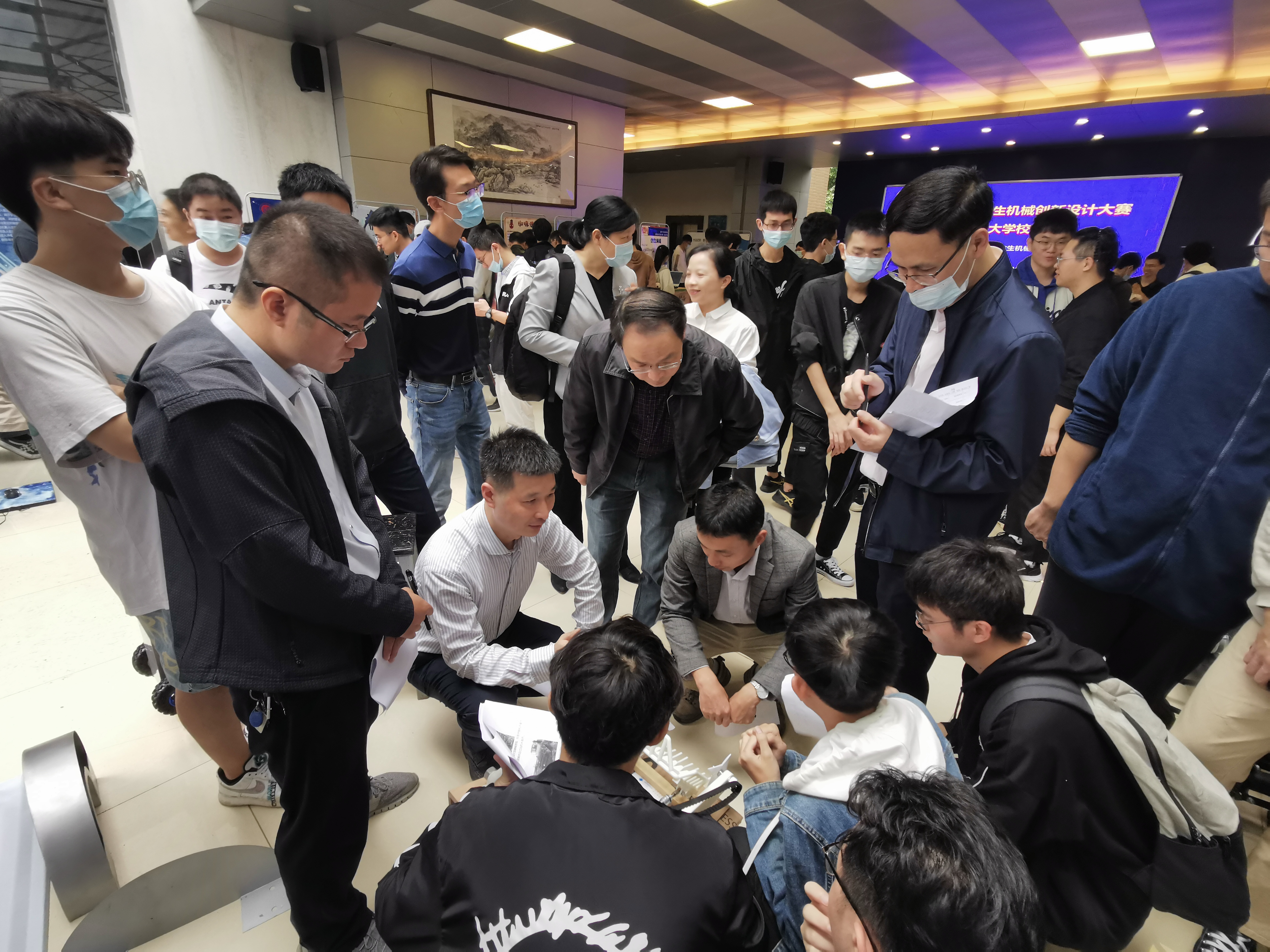 校赛在机械学院一楼大厅成功举办。学院党委副书记(主持工作)叶青、院长钟舜聪、副院长张俊莅临现场指导,机设系、机电系16位评委老师参加评审。30个参赛队伍通过作品答辩、实物演示等环节向在场的师生展示了其设计作品的创新性和实用性。