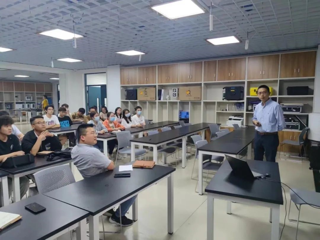 的科研方向、科研团队及科研成果等方面进行介绍,并在介绍过程中重点以学院的各主要科研团队依次展开,精密光学仪器与智能传感团队、动力传动与先进机构团队、认知机器人与医工融合团队、流体动力与电液智能控制团队、人机共融团队等优秀科研团队的研究内容和成果深深吸引和震撼了在场的同学。紧接着,围绕本班学生的特长与发展,杜老师还引导本班同学积极参与科研探索,让在场的每位同学都明确目标、坚定信心、激发热情。此外,杜恒教授还围绕就业与升学、学生创新创业等情况做了具体的介绍,以锻炼能力、积淀科研实力为目标,鼓励本班学生积极参与学科竞赛,为将来的科研打下坚实基础。最后,杜恒老师还针对学生提出的关于如何提高自身科研能力以及如何尽快融入科研团队等问题作出了详细的解答,并对在场的每位同学表达了未来能在科研道路上有所收获的美好祝愿。