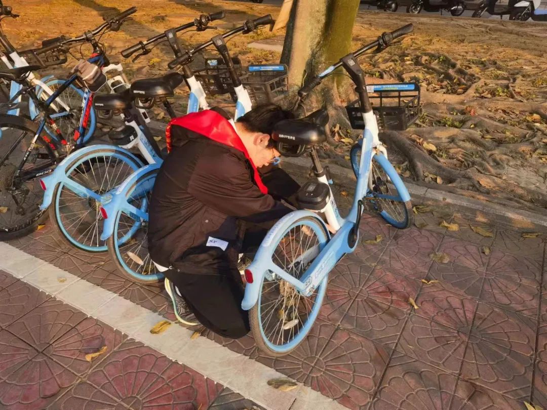 共享单车以方便快捷、低碳环保的优势成为同学们前往教学区的交通工具之一。由于缺乏及时管理,校园内部分共享单车存在“掉链子”、乱摆放的问题,对出行、环境和交通秩序造成一定的负面影响。学院青年志愿者发挥专业优势,开展“安全护航——共享单车维修和秩序维护”志愿活动。对生活区、教学区共享单车停车点的单车进行安全排查、维修以及有序停放工作,保障了共享单车的出行安全,并呼吁同学们自觉遵守社会公德,共同维护共享单车停放秩序,关注生活环境的整洁和便利,营造“人人共建、人人共享”良好氛围。