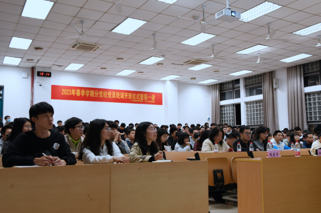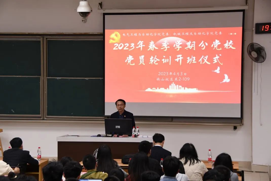 机械学院党委、电气学院党委联合举办2023年春季学期分党校党员轮训培训班开班仪式暨第一讲党课。电气学院党委副书记兼纪委书记鲍星华、机械学院党委副书记兼纪委书记孙鋆及电气学院、机械学院相关辅导员出席本次会议。开班仪式由机械学院党委兼职组织员陈睿莹老师主持。