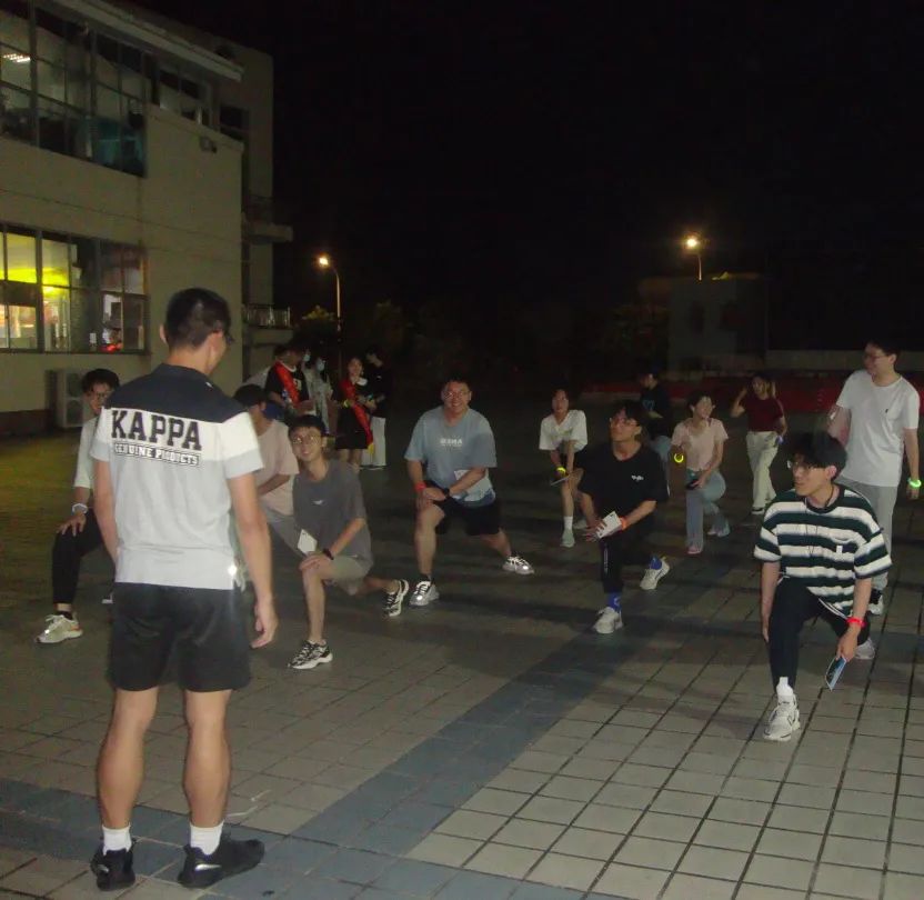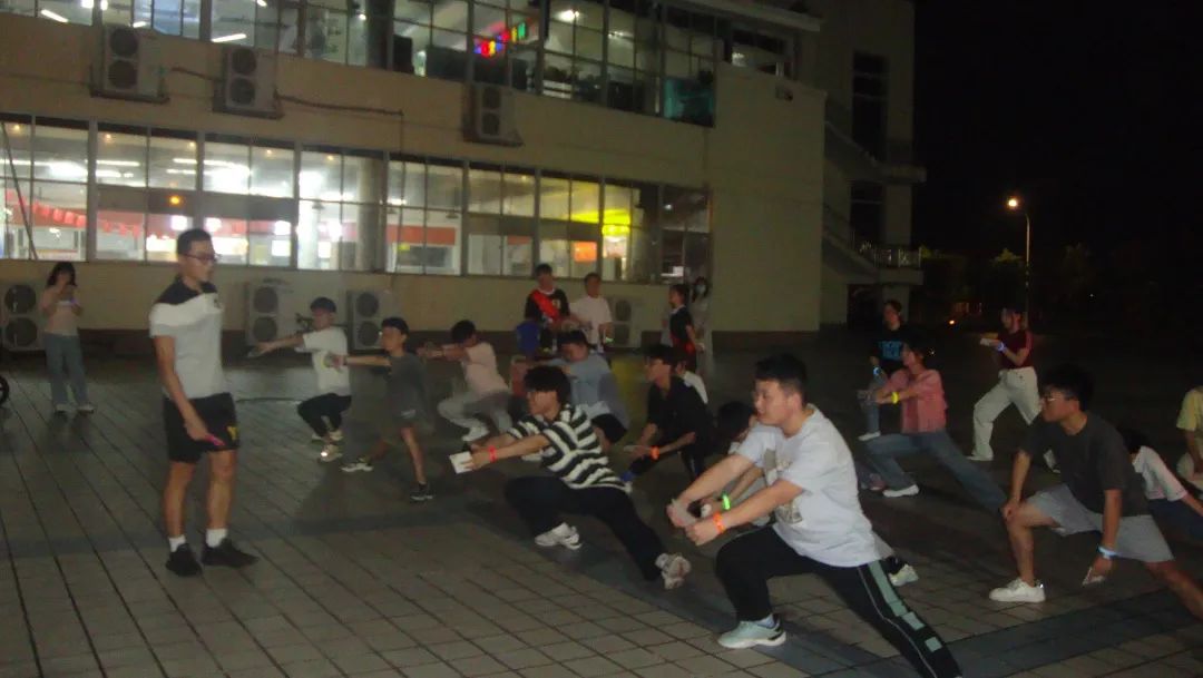 晚上七点半同学们陆续到达青春广场签到,领取集章卡片并装备好荧光手环。为了避免同学们在运动过程中拉伤,机械学院体育部同学带领参赛选手进行拉伸热身运动,为接下来的跑步做好充分准备,拉伸环节结束后本次荧光夜跑活动正式拉开帷幕。