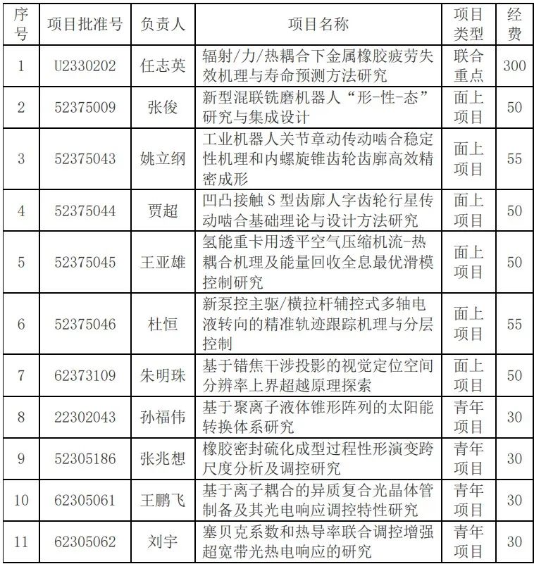 教师共获批国家自然科学基金项目11项,其中联合重点项目1项、面上项目6项、青年项目4项,连续两年在获批总量上突破两位数。其中,任志英教授负责的“辐射/力/热耦合下金属橡胶疲劳失效机理与寿命预测方法研究”项目获NSAF联合基金重点支持项目资助,这标志着海角视频