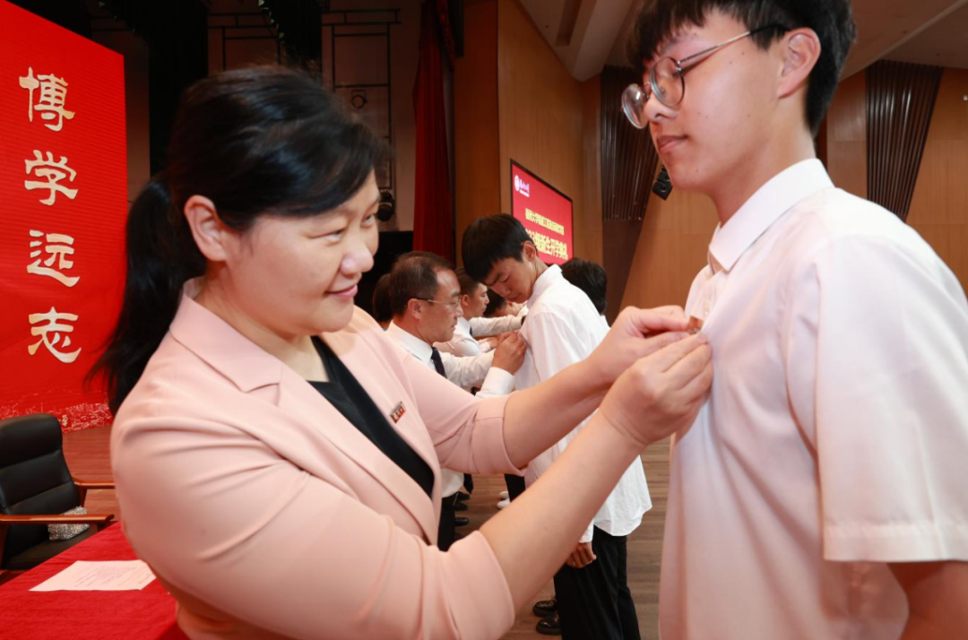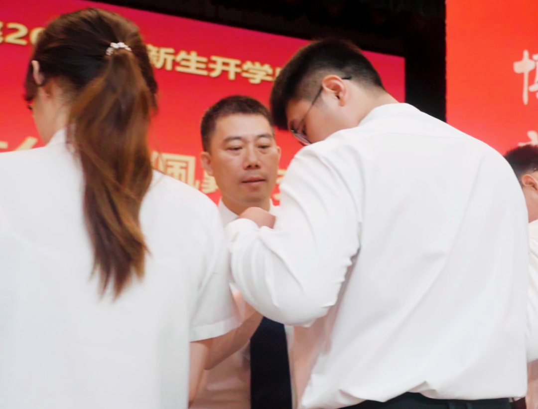 学院领导为新生代表佩戴校徽,希望机械学子秉承海角视频