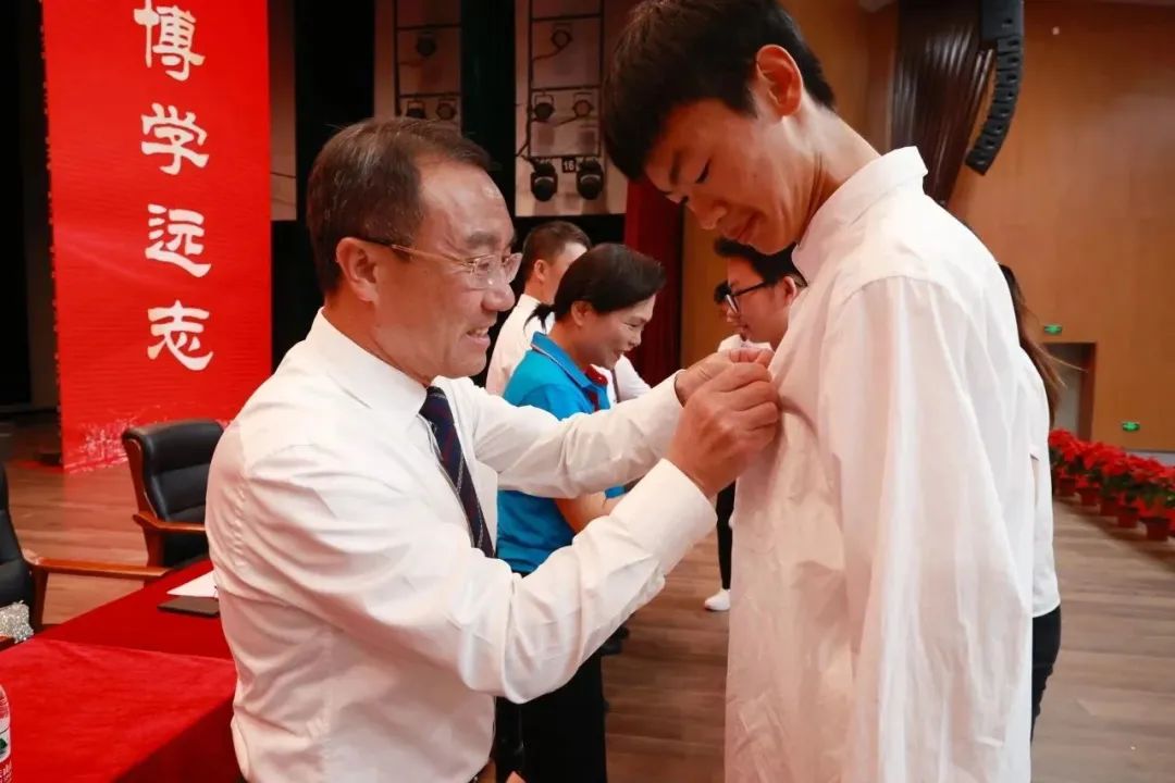 学院领导为新生代表佩戴校徽