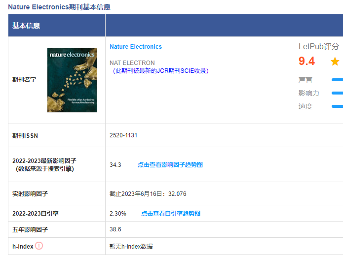 《Nature Electronics》为Nature期刊的子刊,其于2018年创刊,涵盖电子学各领域,如电子学研究的商业和工业应用,其核心是关注新技术的发展并了解其对社会所产生的影响。目前,该刊实时影响因子为34.3,为JCR一区TOP刊。