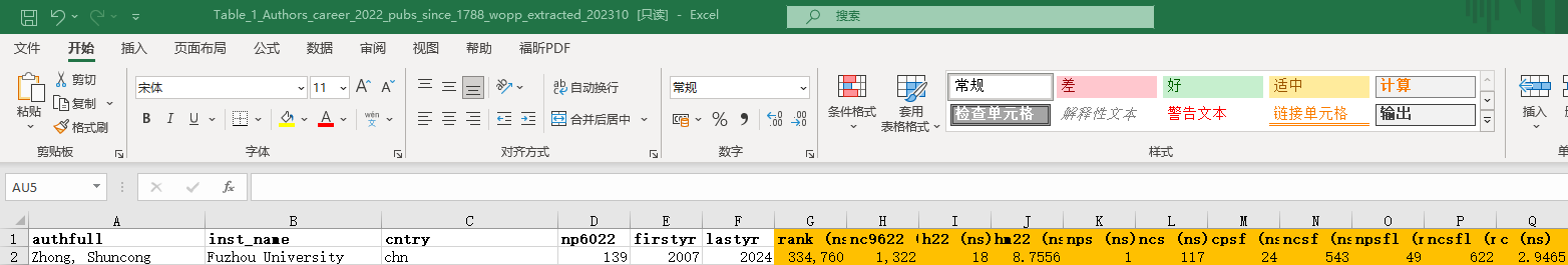 榜单来源:Ioannidis, John P.A. (2023), “October 2023 data-update for "Updated science-wide author databases of standardized citation indicators"”, Elsevier Data Repository, V6, DOI: 10.17632/btchxktzyw.6