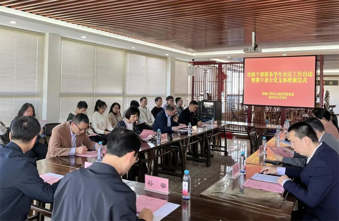 于同观国学教育中心举行处级干部联系学生社区工作启动暨楼宇兼合党支部授旗仪式。校党委离退休工作办公室主任曾忠毅,机械学院党委书记叶青,校党政办公室副主任林文麟,校纪委(监察专员办公室)综合室副主任林元新,校人事处副处长程国庆、余娟清,校党委离退休工作办公室副主任刘卫东、罗维铨,机械学院党委副书记兼纪委书记孙鋆、副院长张俊出席此次会议,全体辅导员和学生代表参加会议。会议由机械学院党委副书记兼纪委书记孙鋆主持。