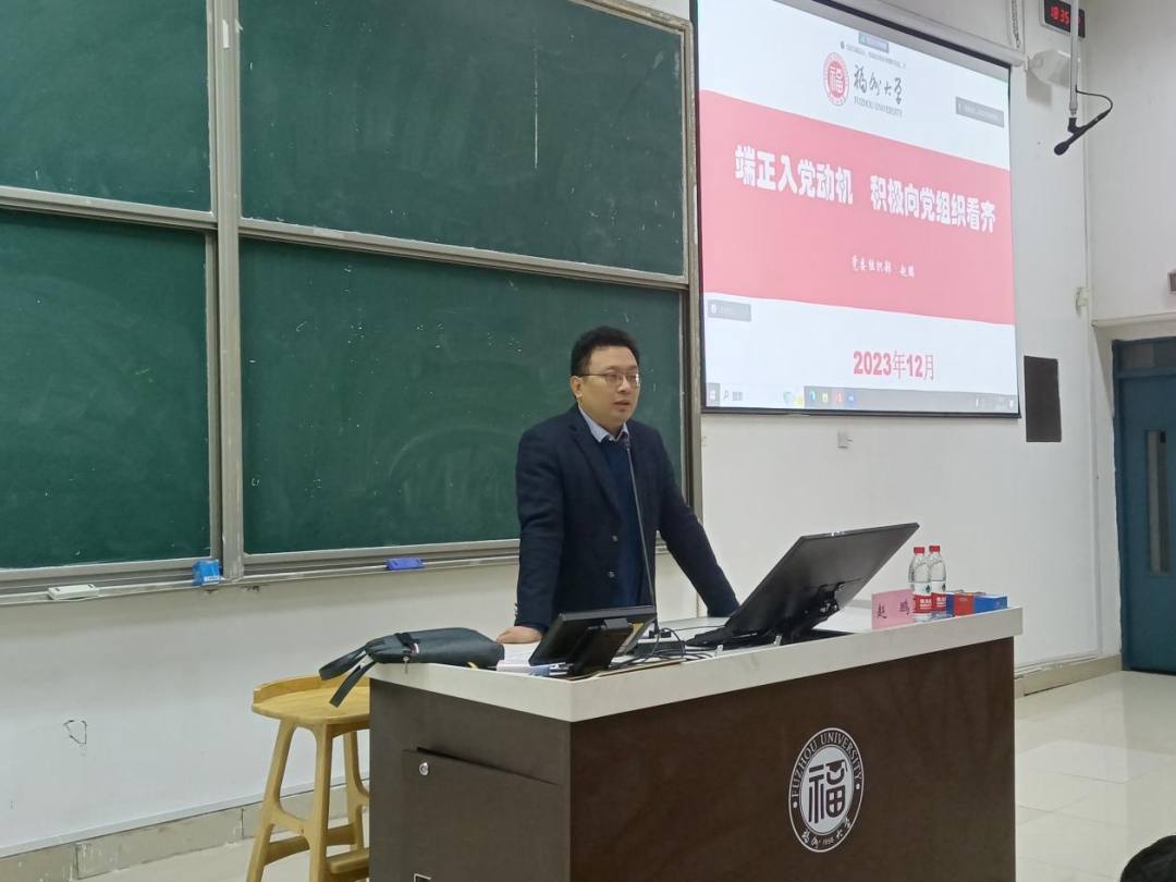 12月4日晚,校党委组织部副部长、副研究员赵鹏老师讲授了开班第一讲——《端正入党动机,积极向党组织看齐》。赵鹏老师从为什么要积极争取入党和对中国共产党的认识两个方面入手,结合实事案例、社会背景、发展需要,依次从什么是入党动机,为什么要端正入党动机,怎样端正入党动机,党组织架构,发展党员的工作要求与步骤等方面进行了深入细致的讲解和指导,帮助学员们树立正确的入党动机。