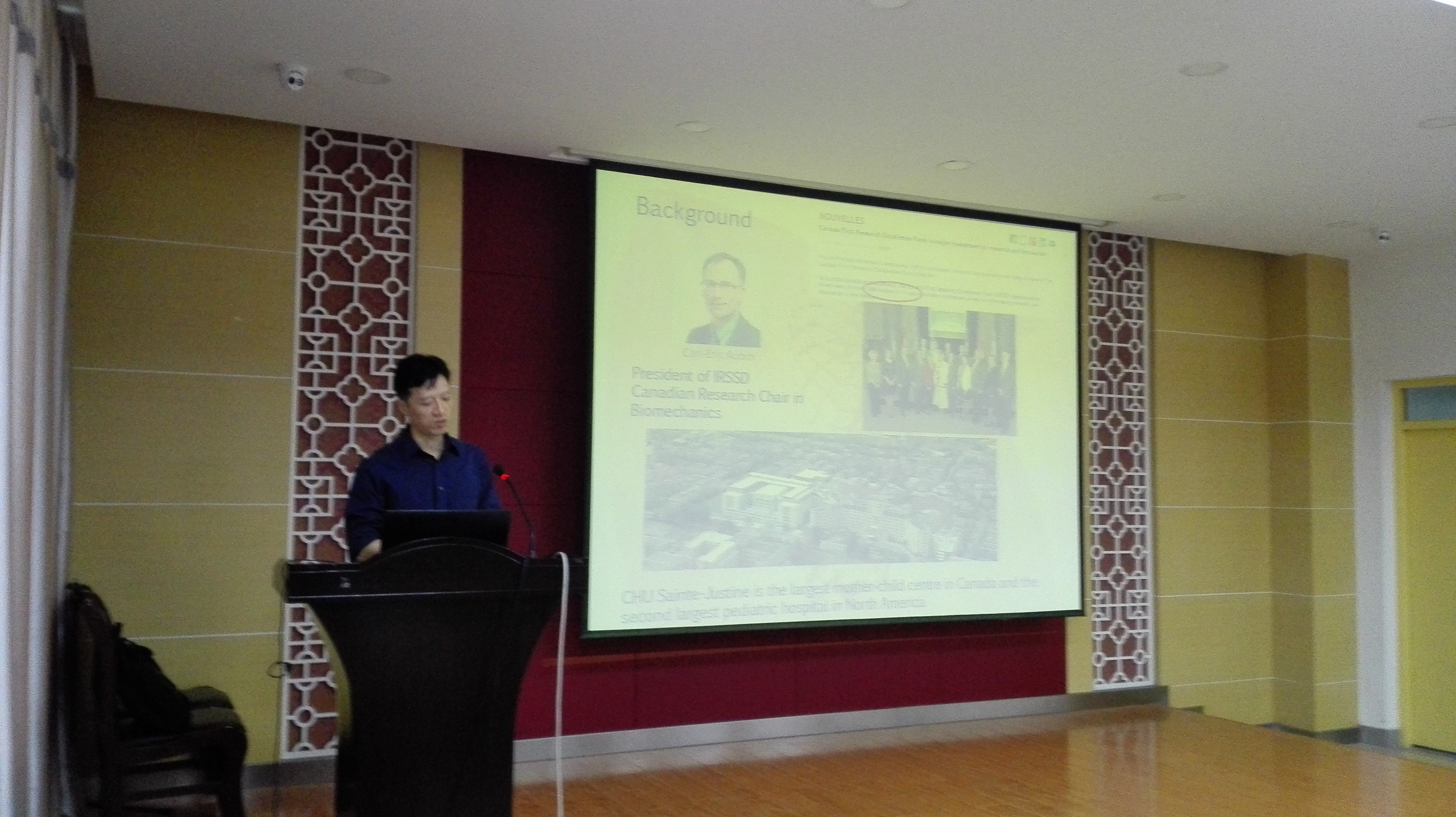 10月19日上午9点半,2016年4月日内瓦国际金奖获得者,现工作于香港中文大学威尔士亲王医院的林晖博士,在机械北楼415为15、16级研究生做了题为”Mechanobiology and Biomechanics in Orthopaedics Rehabilitation”的学术报告。海角视频