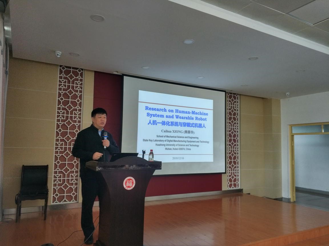 进行交流访问,在机械北楼415为研究生作了题为“人机一体化系统与穿戴式机器人”的学术报告。副院长何炳蔚、教授张俊、副教授郭晓宁、讲师陈彦杰等出席本次学术论坛。16级、17级及18级研究生参与聆听了此次学术讲座。