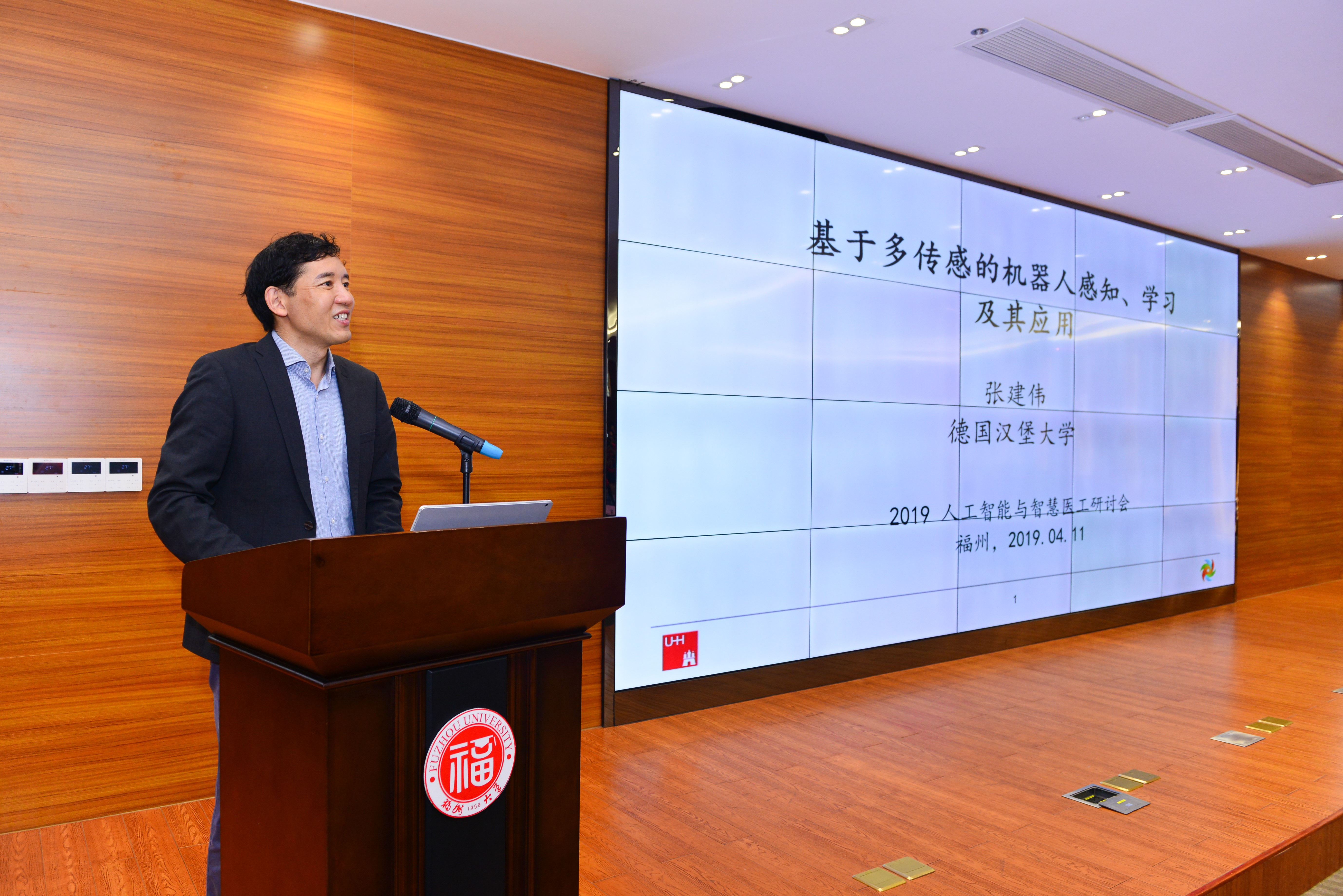 研讨会的伊始,德国汉堡大学多模态技术研究所所长,德国汉堡科学院院士,千人计划专家张建伟教授做了题为“基于多传感的机器人感知、学习及其应用”的报告。在报告中,张建伟教授首先介绍了多传感技术在机器人研究中的发展历程以及发展趋势,同时从实际的科研项目出发,将承接的国内外科研项目作为素材,详细的阐述了人工智能技术在未来生活中的巨大潜力,尤其是在医疗领域,通过利用更为先进的传感技术以及更加全面缜密的算法,可以实现医疗条件的巨大优化。接着国家“万人计划”科技创新领军人才,电子科技大学机器人研究中心执行主任,人工智能研究院副院长程洪教授就“智能康复现状与趋势”这一课题展开学术分享。在报告中,程洪教授从截肢患者的角度出发,研制了一系类可以辅助患者直立行走以及术后康复的智能机器人。通过在传统的机器人设备中加入人脑脑波接收算法,能够使得患者通过自己的思维想法,控制机器人的运作,设备更加人性化、智能化,程洪教授在报告中通过实际的病患案例来进行效果展示,反响强烈。最后中国中西医结合学会理事、中华中医药学会理事、福建省中医药学会会长,福建省康复产业研究院院长,国务院政府特殊津贴专家刘建忠主任医师带来主题为“健康中国战略下康复意识的树立与践行”的学术报告,刘建忠主任医师从中国的实际国情以及政府的战略部署出发,详细的阐述了当下中国康复意识的含义,继而从政府的战略部署谈起国民康复意识的践行,多角度的诠释社会各单位的责任和义务,为促进我国康复事业的蓬勃发展献言献策。