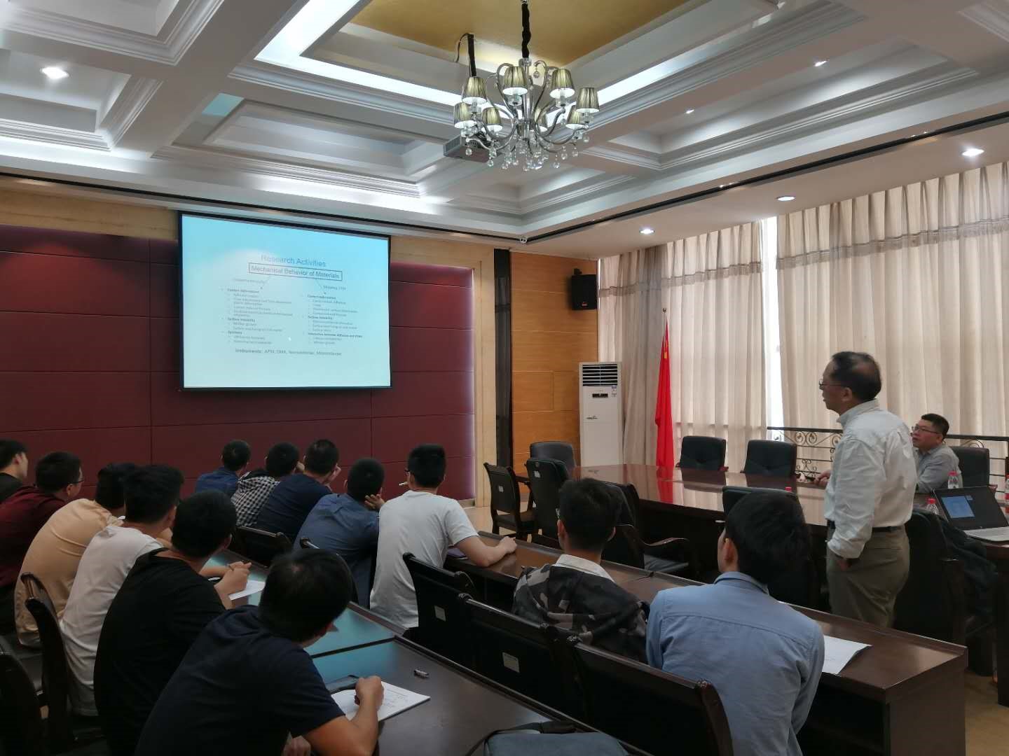 ,在机械南401为研究生做了题为”Filed-induced surface structures on polymer films”的学术报告。锁要红教授主持此次学术报告,刘明教授以及机械学院相关专业的研究生听取了学术讲座。
