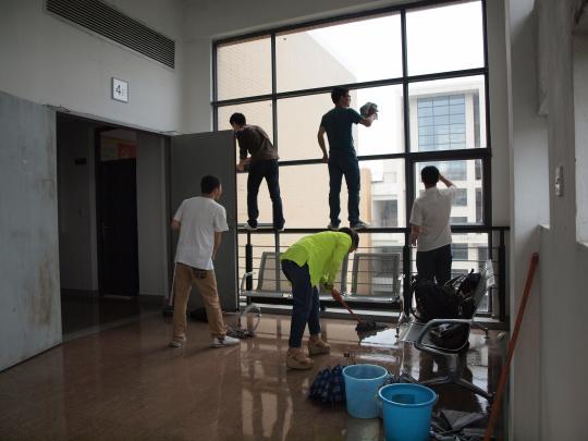 5月18日上午,学院组织2012级各班同学走出宿舍,冒着小雨前往学院楼和车辆工程实践中心,对各楼层及周边环境进行清扫整理。活动共历时2个多小时,机械南楼、北楼及周边环境面貌也随之焕然一新。2012级辅导员陈劼老师进行现场指导、监督和检查。