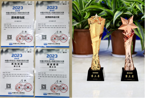 2023117日至12日,2023赛季中国大学生电动方程式和无人驾驶方程式汽车大赛在合肥举行。海角视频 机械学院K-night方程式赛车队无人驾驶电动方程式赛车A20斩获全国唯一黑马奖(奖金20000元及教学实验用蔚来电动汽车1辆),首获总成绩全国一等奖,并且获得直线加速、高速循迹比赛全国季军以及优秀软件设计奖;电动方程式赛车E24获得总成绩全国二等奖。