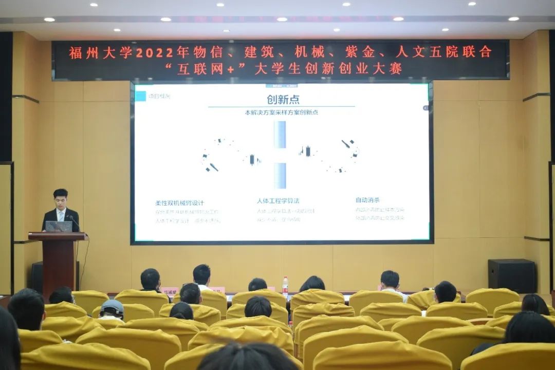 物信、建筑、机械、紫金、人文五院联合第八届“互联网+”大学生创新创业大赛院赛决赛于建筑与城乡规划学院一楼科报厅举办。