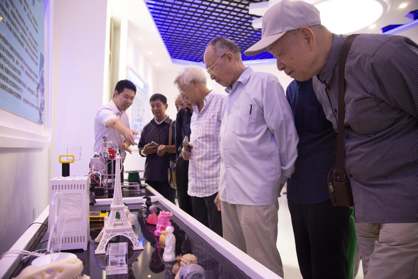 ( 陈老师为院友介绍在校学生的3D打印作品)
