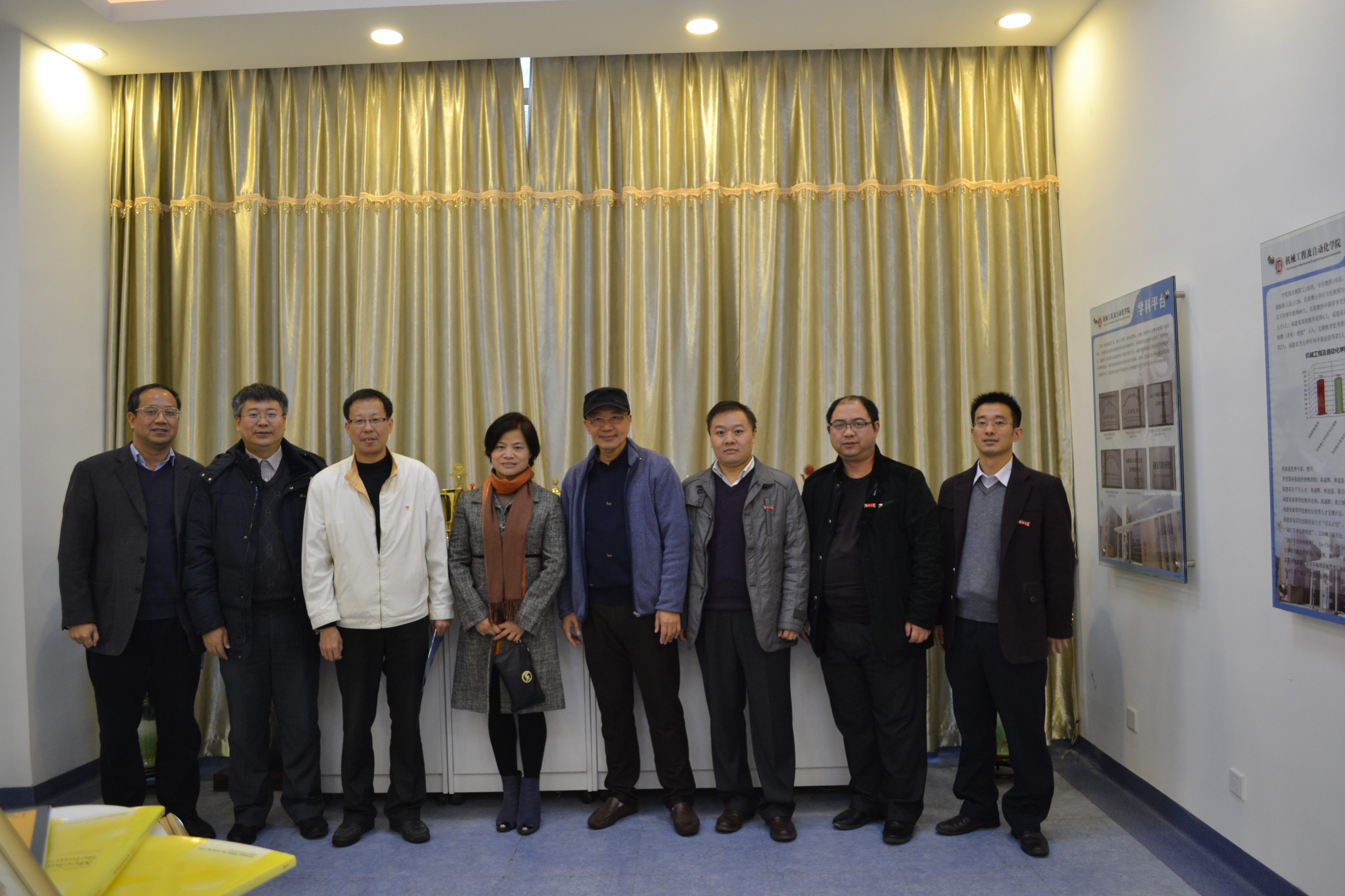 2015年12月24日上午,77级院友陈耀先生、82级院友黄振荣先生返校参观。陈耀先生现任新加坡春城(集团)有限公司董事长。院领导姚立纲院长、李玲书记、何炳蔚副院长、林文麟副书记和院团委书记夏钢老师接待了校友,带领校友参观了机械创新文化馆。