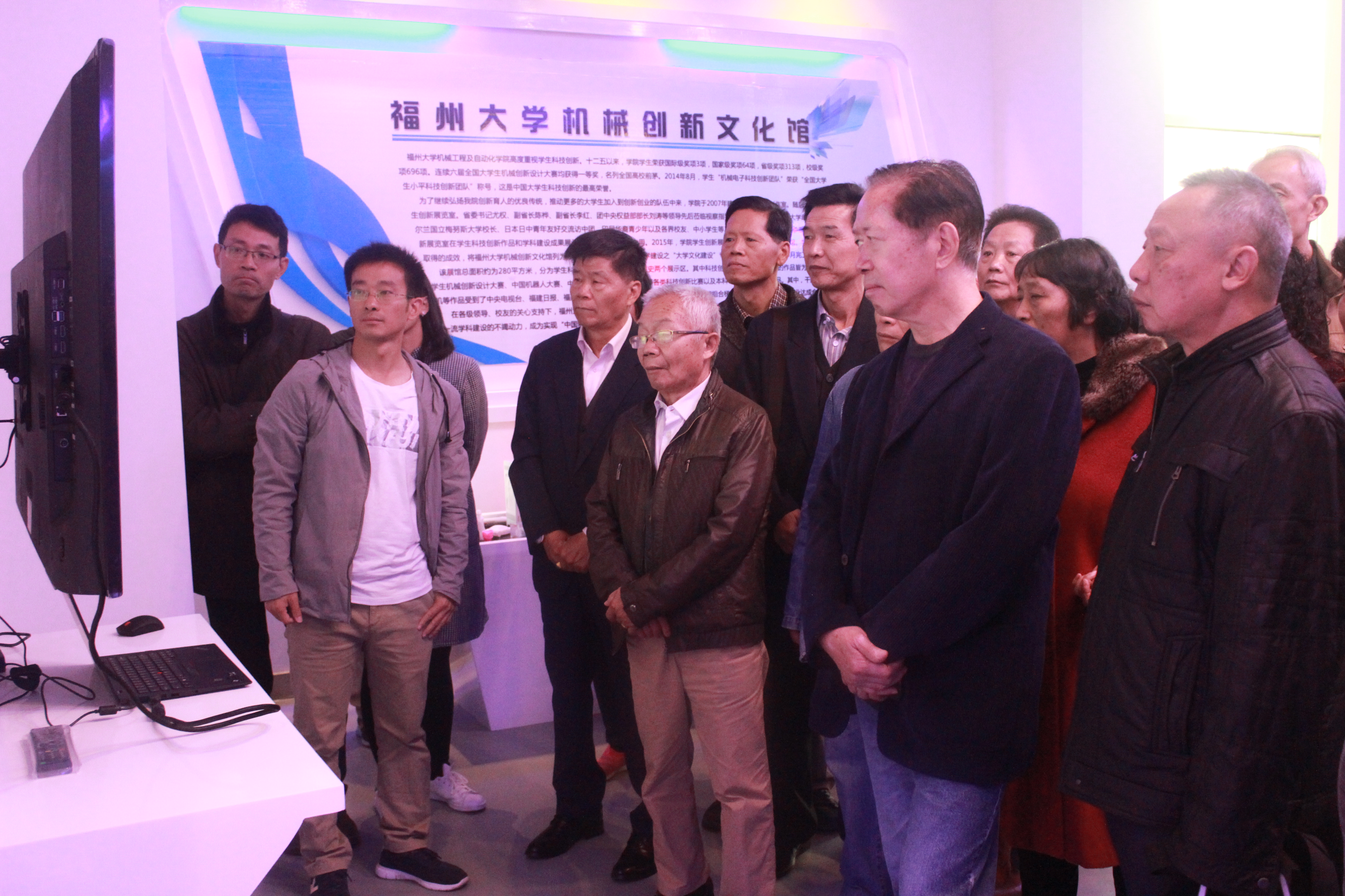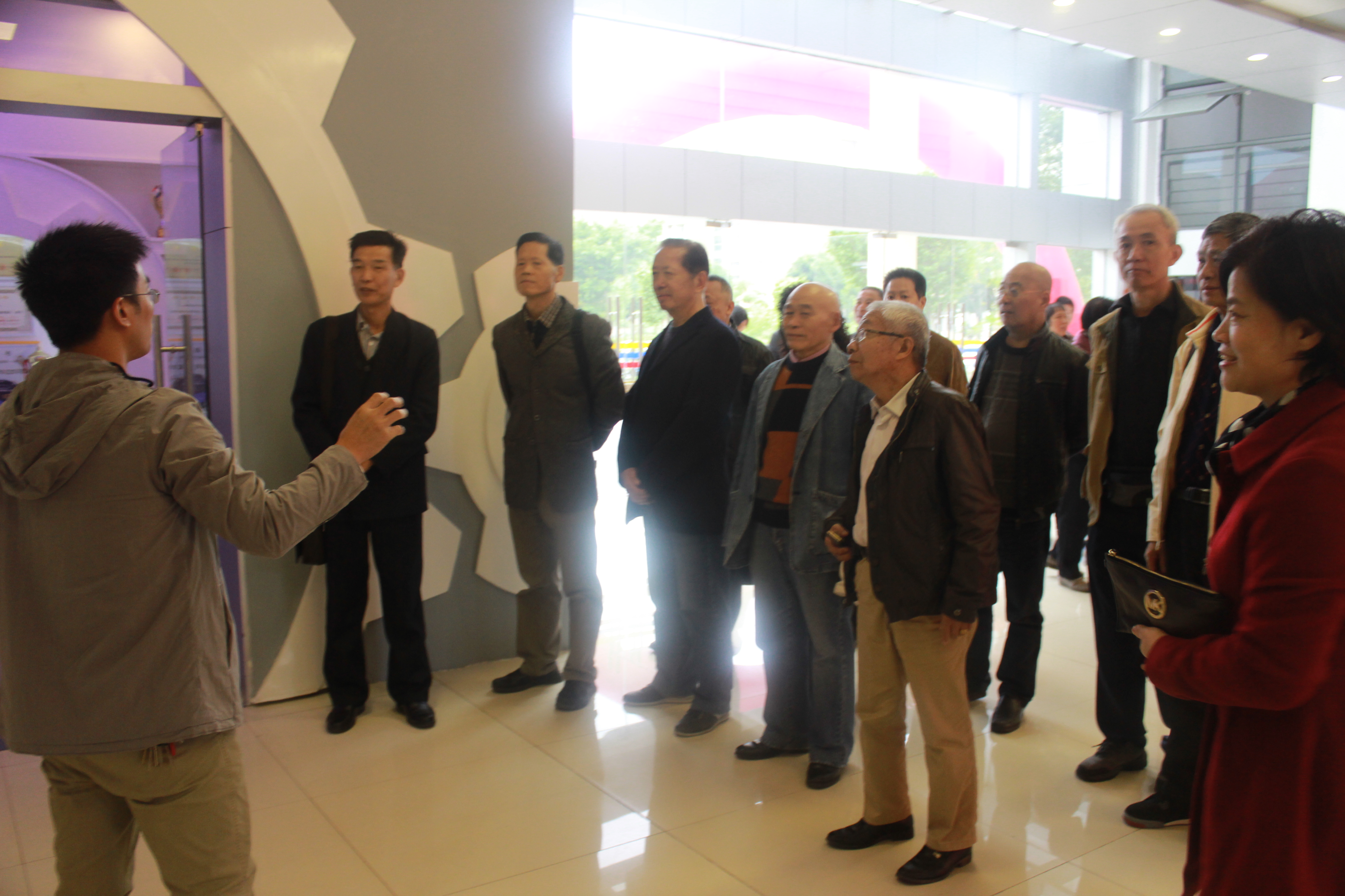 12月3日,1976届机制2班校友重返母校参观科技创新文化馆。海角视频 党委书记李玲研究员、校友会游生辉秘书长和院党委副书记林文麟老师陪同参观。