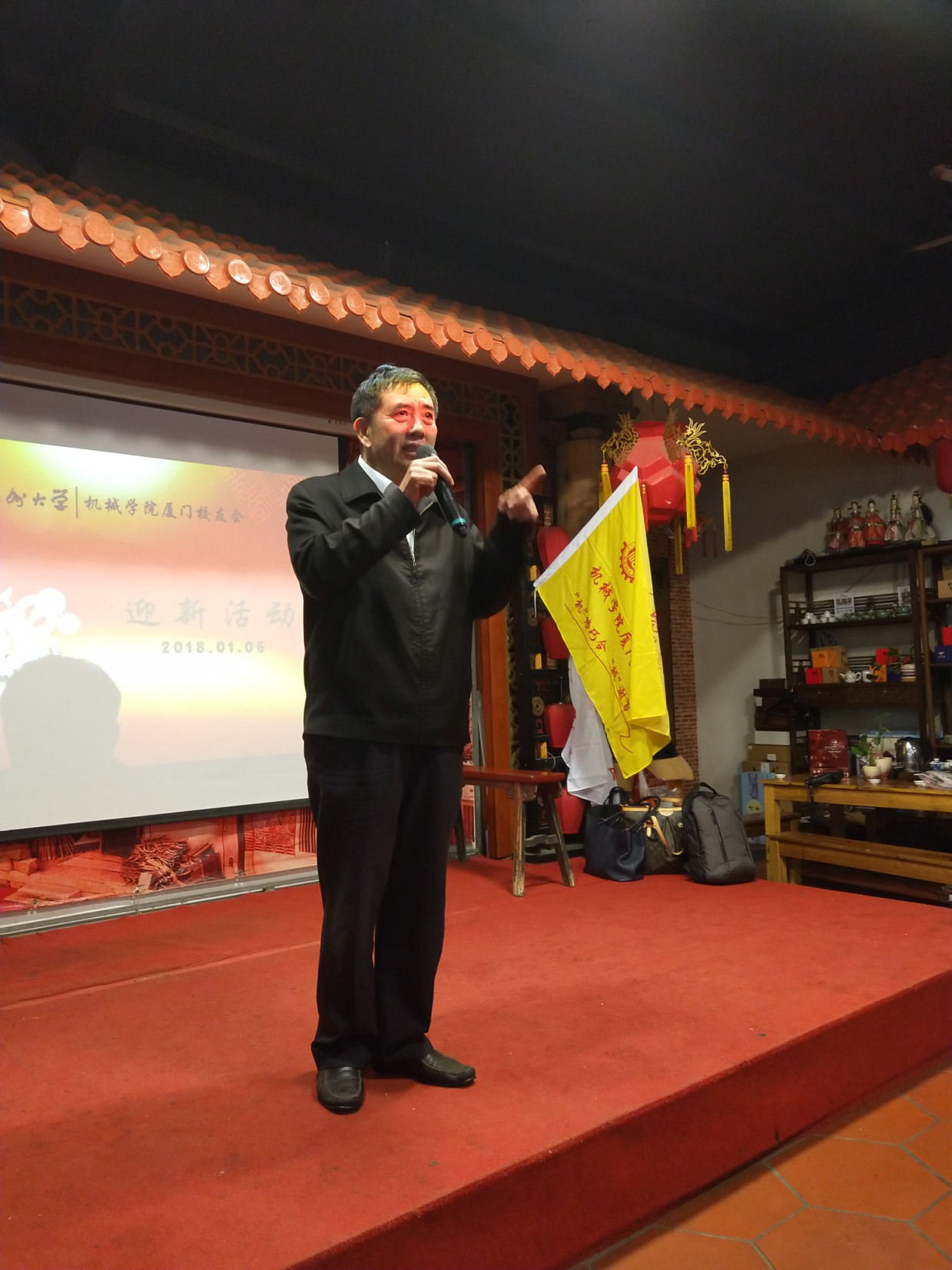 厦门校友会致辞,他肯定了机械分会开展的各项工作,活动有特点,执行有落地,希望加强沟通联系,进一步做好校友工作。