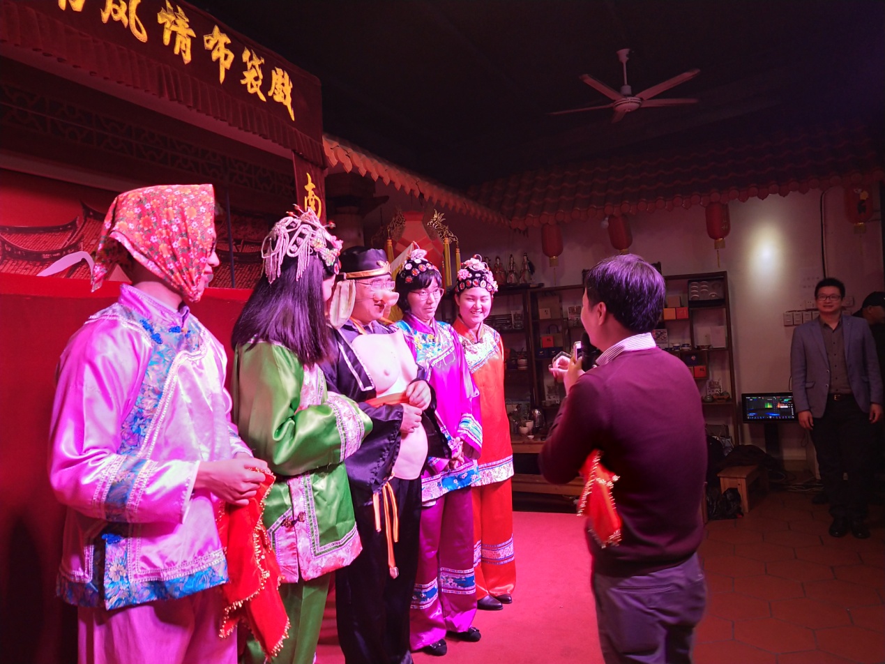 随后,晚宴开始,校友们一边品尝具有闽南特色的美味佳肴,一边欣赏精彩的节目表演,布袋戏引得大家阵阵掌声,纷纷拿起手机拍照、录像;油柑枝售卖令大家开怀大笑;猪八戒等节目表演更是引得全场爆笑,活动在欢声笑语中圆满结束。