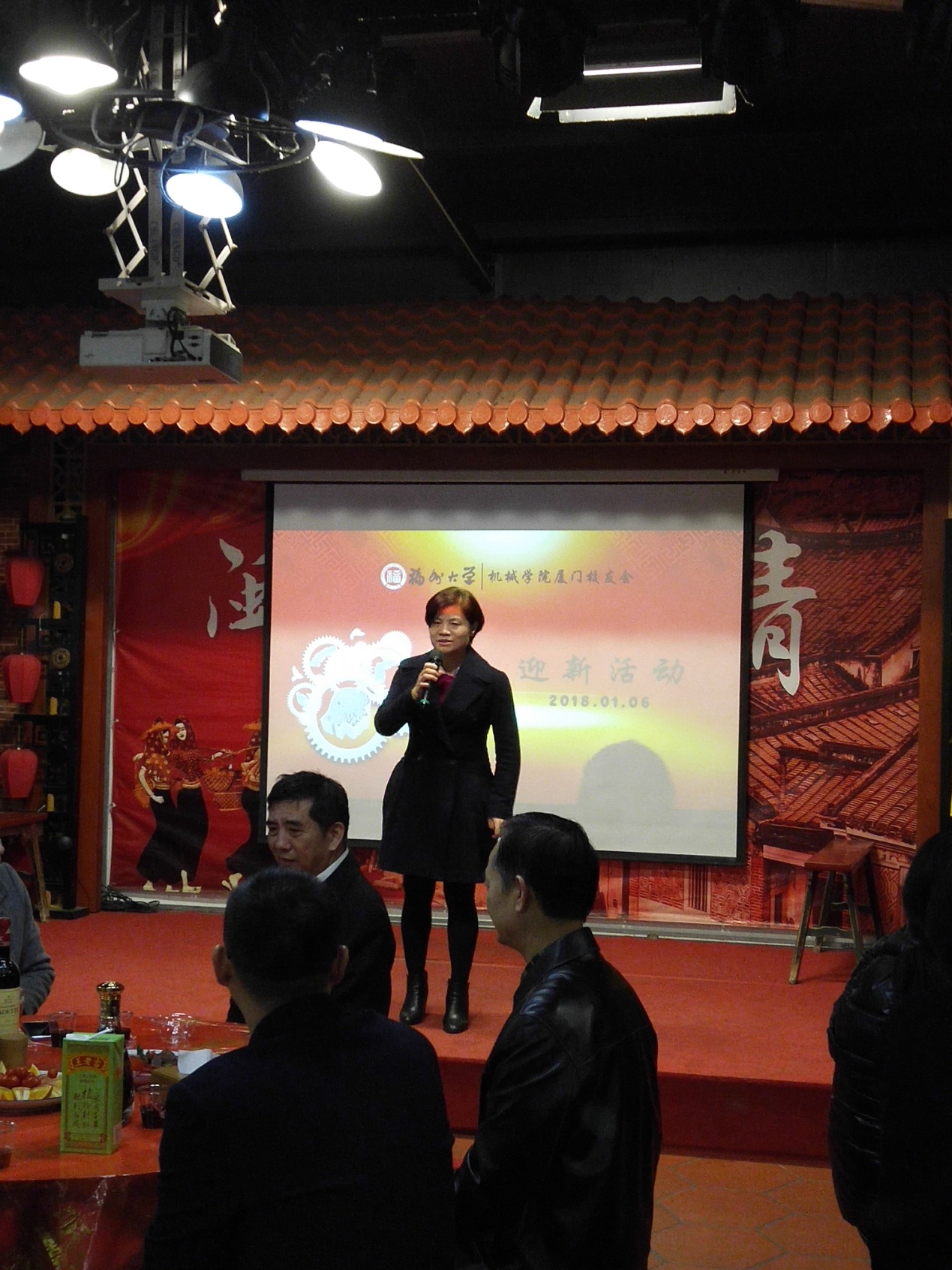 校友总会会长程玉敏致辞,她说,“机”缘巧合,“械”谢有你,说的很好,机械校友会的工作做得很有特点,她通报了母校所取得的各项优异成绩,母校各项排名不断上升,各地校友会开展有声有色,她指出厦门校友会的工作一直走在前列,2018年是母校60周年校庆,她希望校友们回母校看看,一起做好校友工作。