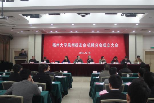 大会通报了泉州校友会机械校友分会的筹备情况,审议并通过校友分会章程和机构组成名单,黄东平当选会长,柯跃前当选副会长兼秘书长。院长姚立纲教授在会上介 绍了机械学院的发展近况和学院校友工作情况。接着,原副校长高诚辉教授发表了讲话,他对分会成立表示热烈的祝贺,并对泉州机械校友踏实的作风和爱拼会赢的 精神给予高度肯定。最后,陈少平副书记向大会致辞,他向校友们简要介绍了学校55周年校庆活动所取得的成绩,希望校友分会在各届校友的共同努力下得到蓬勃发展,校友们能与母校和学院加强互动,促进母校和校友事业共同发展,并为泉州经济社会发展作出更大贡献。