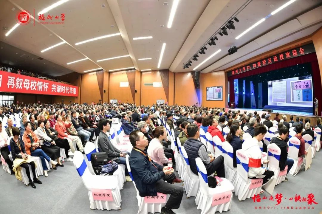 党委书记陈国龙,党委副书记张星、黄身勇,副校长林键、郭文忠以及学校有关部处和学院负责人出席欢迎会。来自全球各地的77、78级校友们与在校师生逾千人济济一堂,共襄盛会。