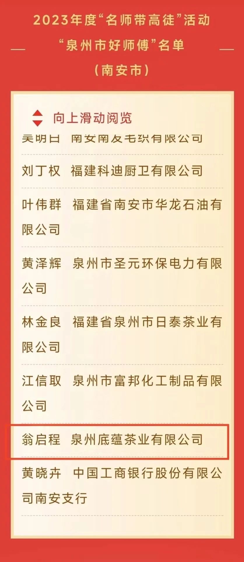 为深入学习贯彻党的二十大精神和二十届三中全会精神,深化拓展“深学争优、敢为争先、实干争效”行动部署要求,落实落细“涌泉”行动,加快建设知识型、技能型、创新型的产业工人队伍,助力发展新质生产力,2023年泉州市总工会在全市范围内广泛开展“名师带高徒”活动。全市广大职工踊跃参与,立足本职本岗,努力钻研技术,开展师徒帮带,涌现出一批爱岗敬业、技艺精湛、悉心传艺、成绩突出的师傅。