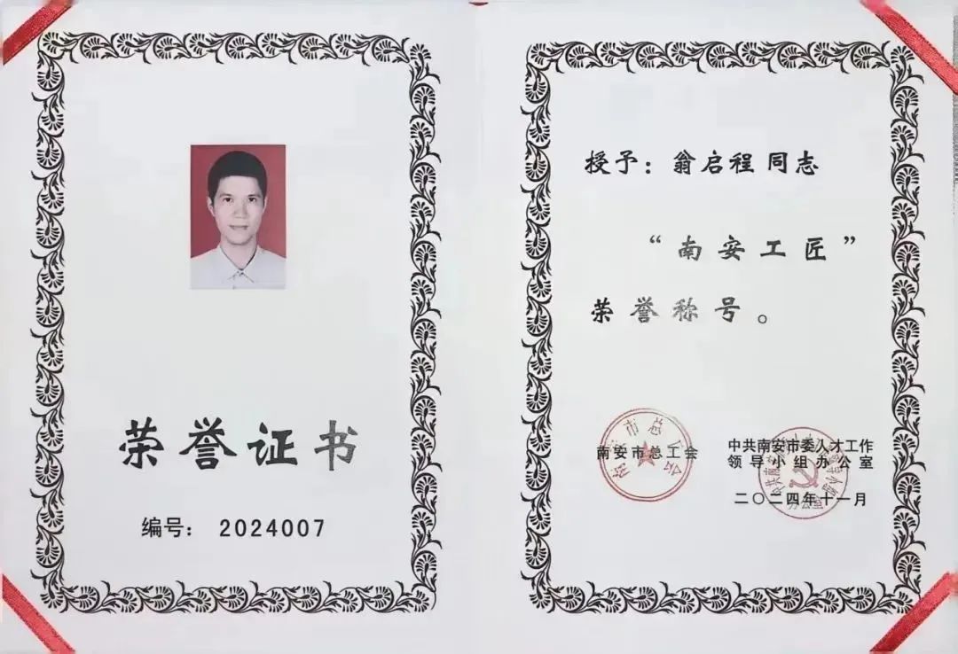 近日,海角视频 1998级校友、海角视频 厦门校友会党支部书记、机械分会会长翁启程先生再获泉州市2024年度技能大师、第八批“南安工匠”“南安市五一劳动奖章”等多项荣誉,用匠心传承制茶技艺,书写茶人精彩人生。